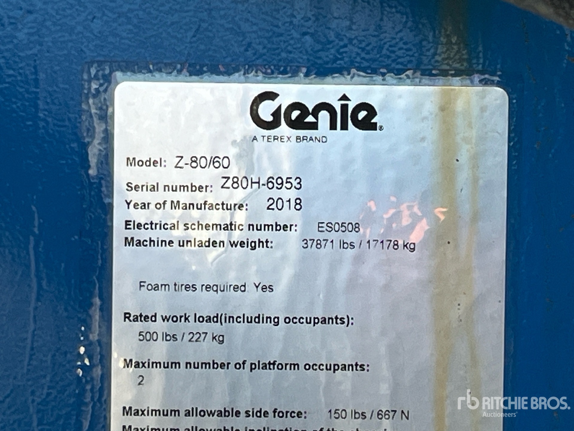 80 ft Max Platform Height, 500 lb Max Weight Capacity, Jib, Power to Platform, Onboard Generator, 2017 US EPA Label, Deutz TD2.9 L4 4 Cylinder 2.9 L Diesel Engine, 18-625 Tires