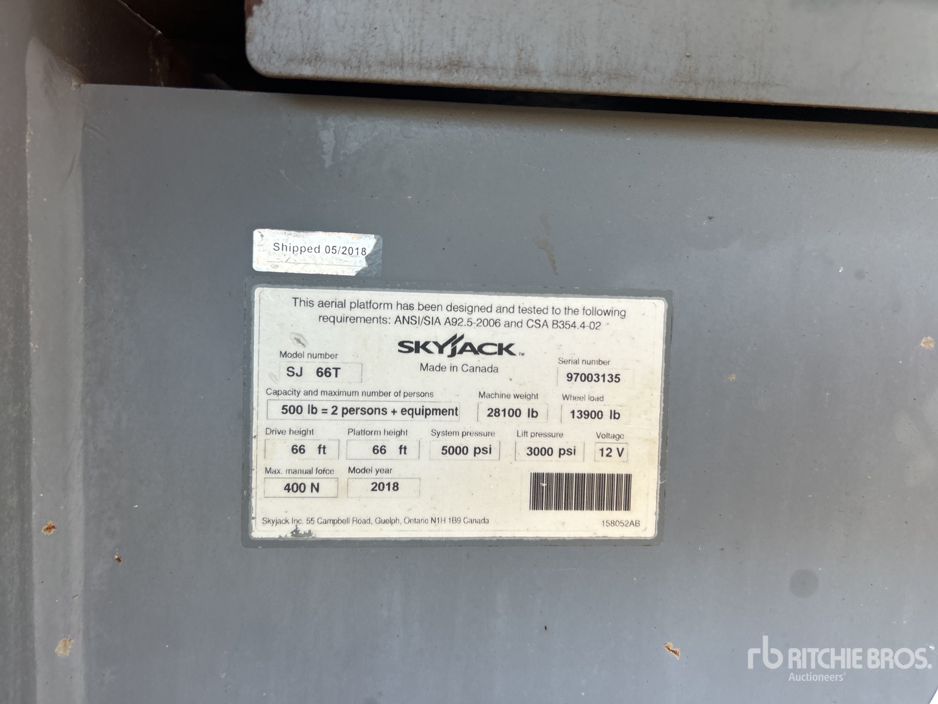 66 ft Max Platform Height, 500 lb Max Weight Capacity, Jib, Power to Platform, 4 Cylinder Diesel Engine, 385/65D19.5 NHS Foam-Filled Tires