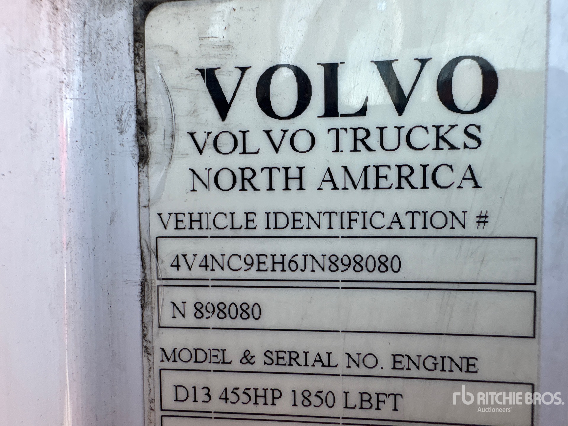 Volvo D13M 455 hp Engine, US EPA Label, 18488.6 Engine hrs, Volvo ATO2612F 12-Speed Automated Transmission, 13200 lb Front Axle, 38000 lb Rears, 51200 lb GVWR, Engine Brake, Differential Lock, High Rise Sleeper Cab, Bunk Beds, Bunk Heater, Auxiliary Power Unit, 235 in Wheelbase, Air Suspension, Aluminum Wheels, 295/75R22.5, Air Sliding 5th Wheel, Dual Fuel Tanks