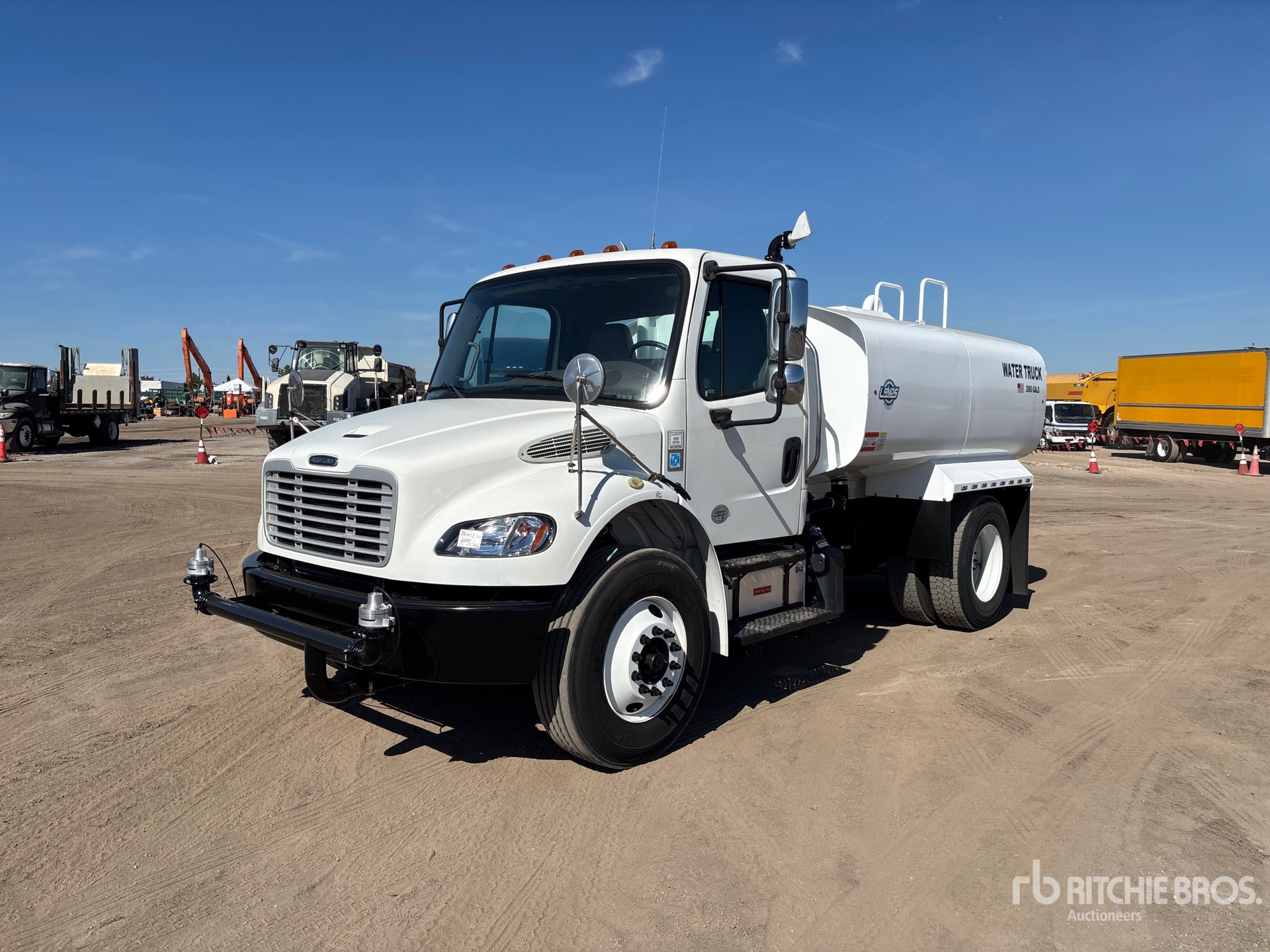 Cummins B6.7 6 Cylinder 6.7 L Diesel 250 hp Engine, 2018 US EPA Label, CARB Compliant, Requires Diesel Exhaust Fluid, 8762 Engine hrs, Eaton Fuller Automatic Transmission, 12000 lb Front Axle, 21000 lb Rears, 33000 lb GVWR, Air Ride Cab, 11R22.5, Air Ride Suspension, 157 in Wheelbase, PTO, Lands Unused Powder Coated 2000 gal Steel Tank, 5 ft 7 in, Spray Bar, Front Spray, Rear Spray, Side Spray, Equipment-from-Lands-Used-Trucks