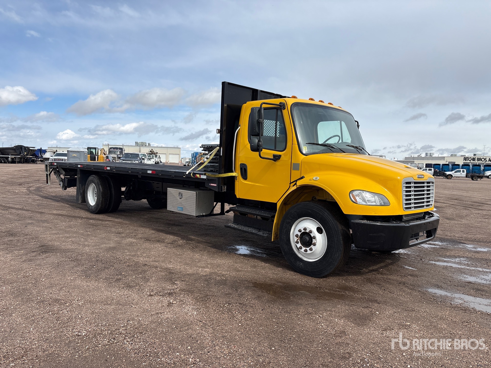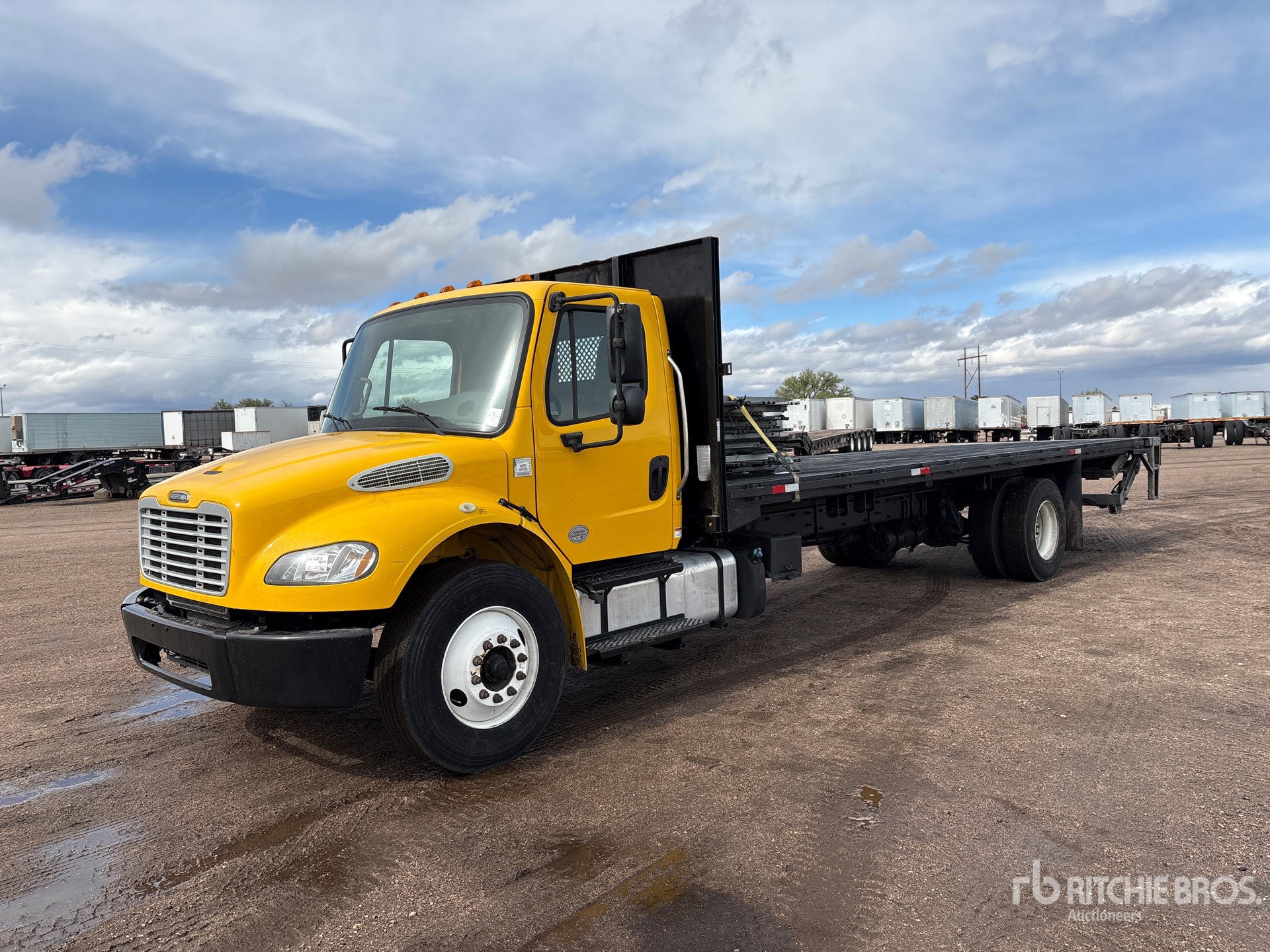 Located in Lane 14 Spot 1, Cummins B6.7 6 Cylinder 6.7 L Diesel 220 hp Engine, 2018 US EPA Label, Requires Diesel Exhaust Fluid, Eaton Fuller EDCO-6F107A Automatic Transmission, 10000 lb Front Axle, 19000 lb Rears, 5.56:1 Axle Ratio, 26000 lb GVWR, 11R22.5, Airliner Air Ride Suspension, 270 in Wheelbase, 26 ft 4 in x 97 in Bed, Liftgate
