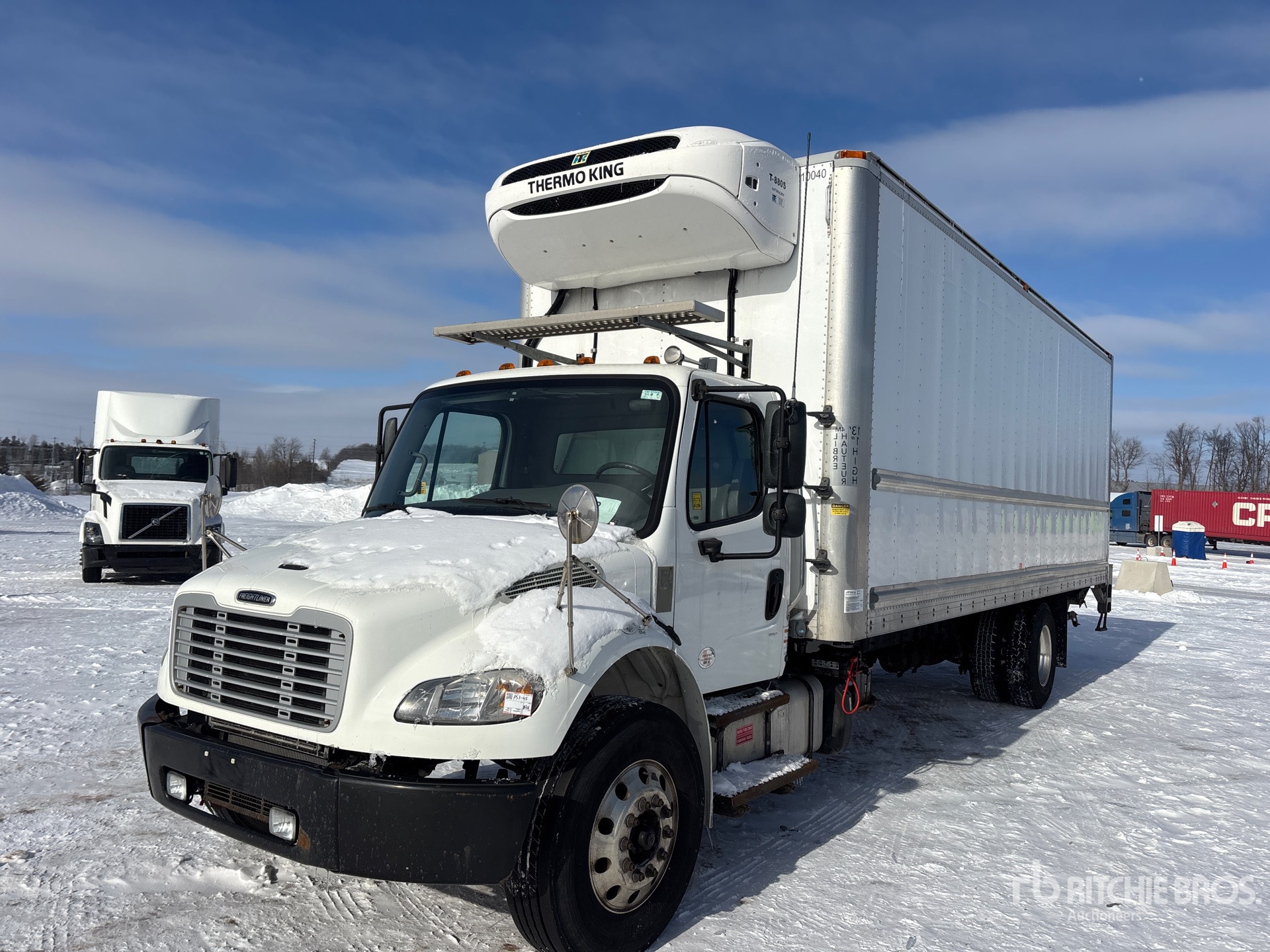 Cummins B6.7 220 6 Cylinder 6.7 L Diesel 220 hp Engine, 2017 US EPA Label, CARB Compliant, Requires Diesel Exhaust Fluid, 8339 Engine hrs, Allison 2500 Automatic Transmission, 12000 lb Front Axle, 21000 lb Rears, 33000 lb GVWR, Airliner Air Ride Suspension, Thermo King T-880S Reefer Unit, Multivans 26 ft x 102 in Wide x 102 in High Body, Curbside Door, Liftgate