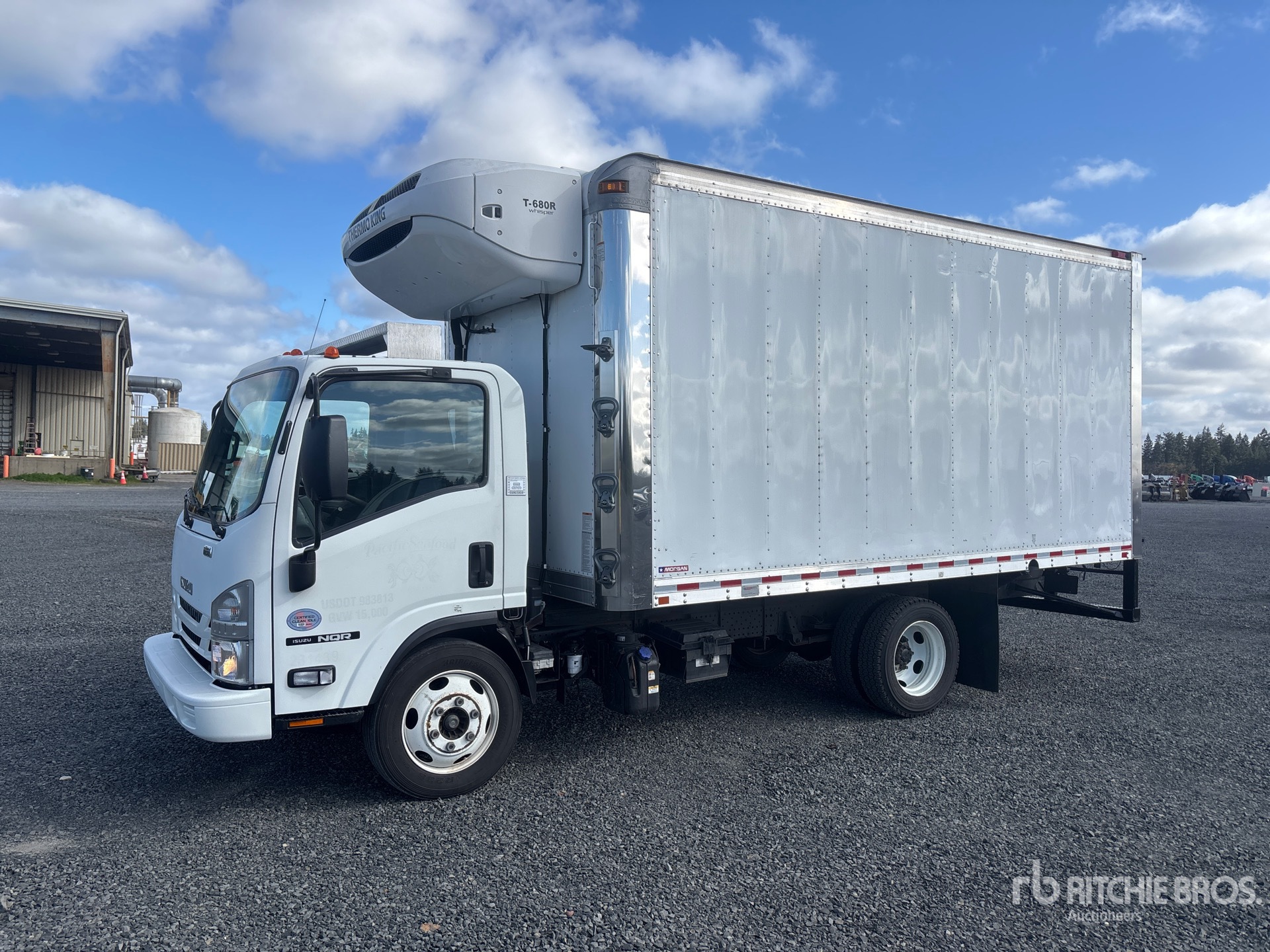 Isuzu 4HK1TC 4 Cylinder 317 cid Diesel 210 hp Engine, 2018 US EPA Label, Requires Diesel Exhaust Fluid, Automatic Transmission, 6830 lb Front Axle, 12980 lb Rears, 17950 lb GVWR, 225/70R19.5, Spring Suspension, 150 in Wheelbase, Thermo King T-680R Reefer Unit, 8887 Reefer Engine Hours:, Morgan 16 ft x 96 in Wide x 91 in High Body, Walk-Up Ramp
