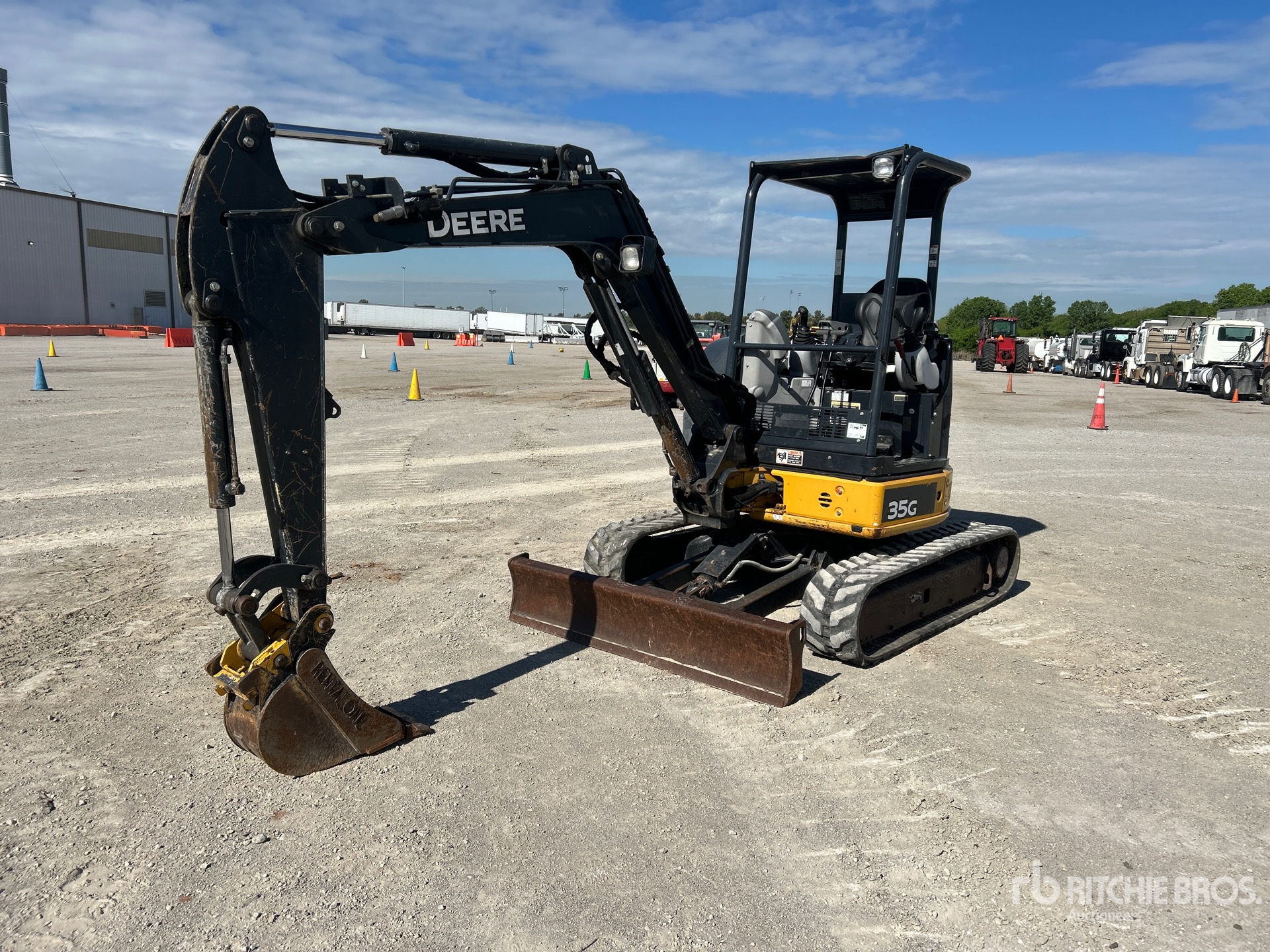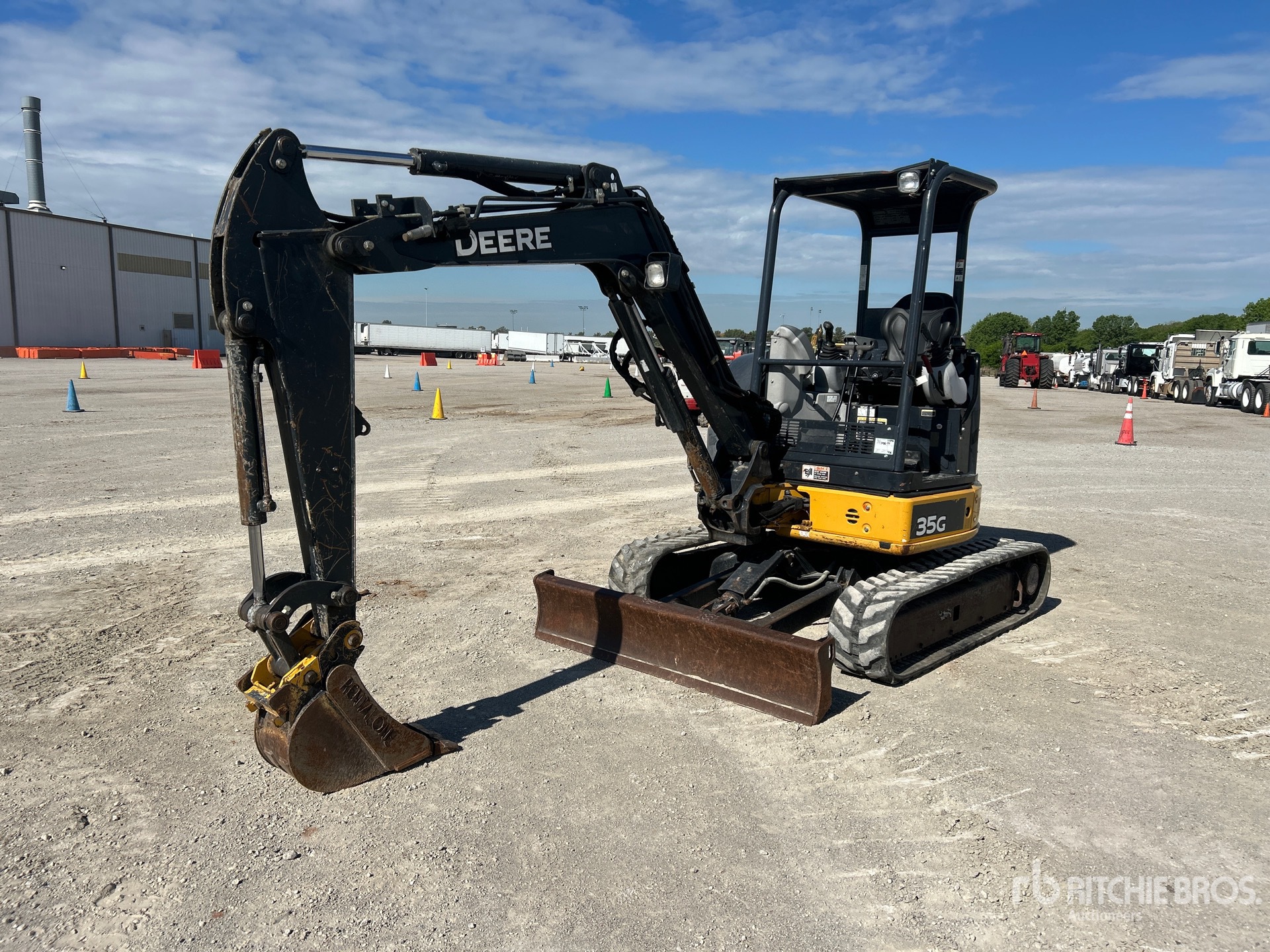 Swing Boom, 4 ft 4 in Stick, Auxiliary Hydraulic Plumbing, Backfill Blade, 12 in Rubber Tracks, Manual Quick Coupler, 12 in Digging Bucket, Thumb Bracket