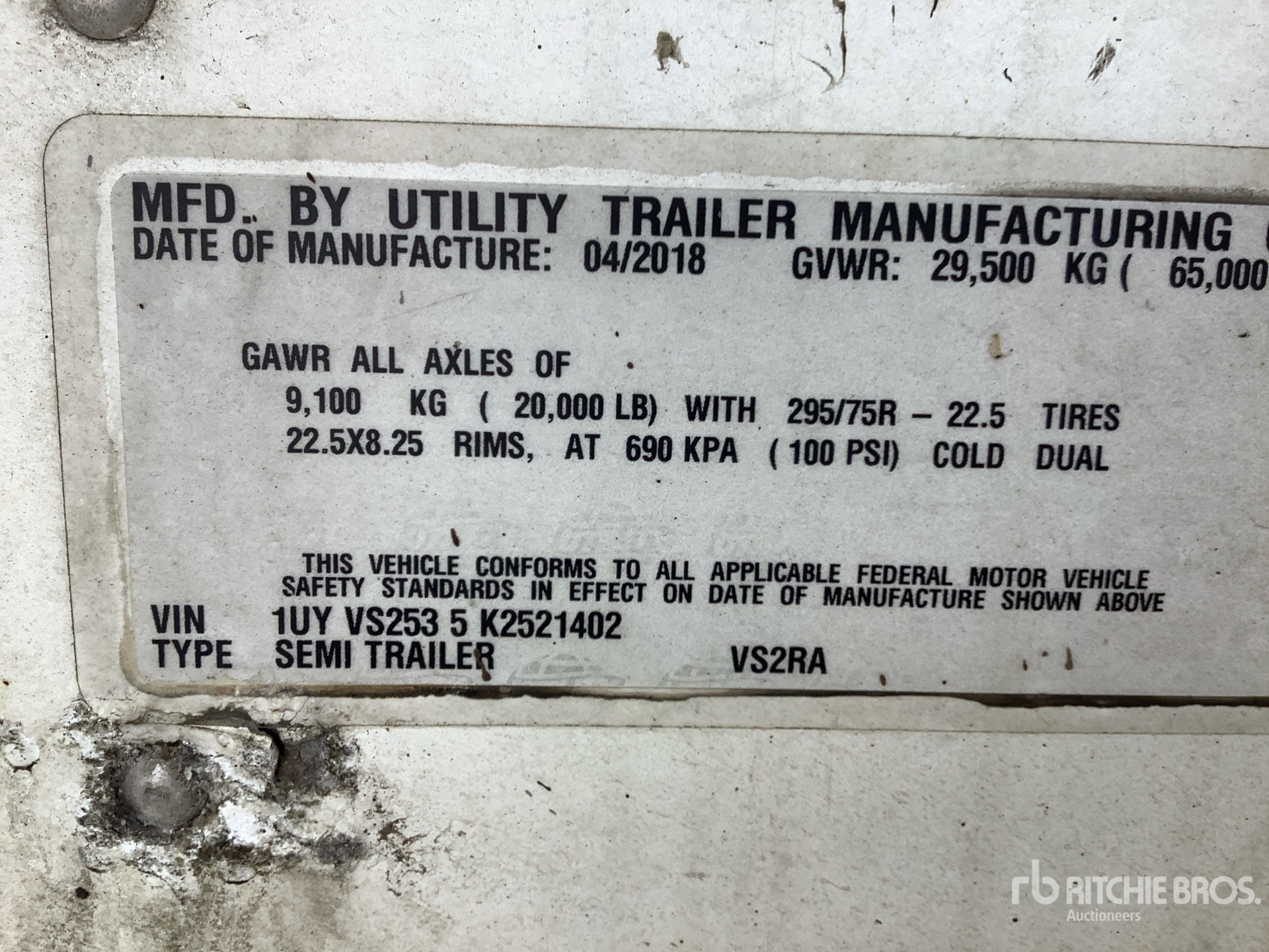 The detailed equipment information is limited in scope, and Ritchie Bros. Auctioneers has not inspected any aspects or components of the equipment other than those expressly set forth herein. Unless expressly stated, we make no representations or warranties, express or implied, concerning the equipment or its components, including without limitation any representations or warranties concerning functionality, conformity or compliance with any safety standard or requirement of any applicable authority or regulatory body, fitness for any particular purpose, or merchantability. You are strongly advised to perform your own detailed inspection of the equipment prior to bidding.