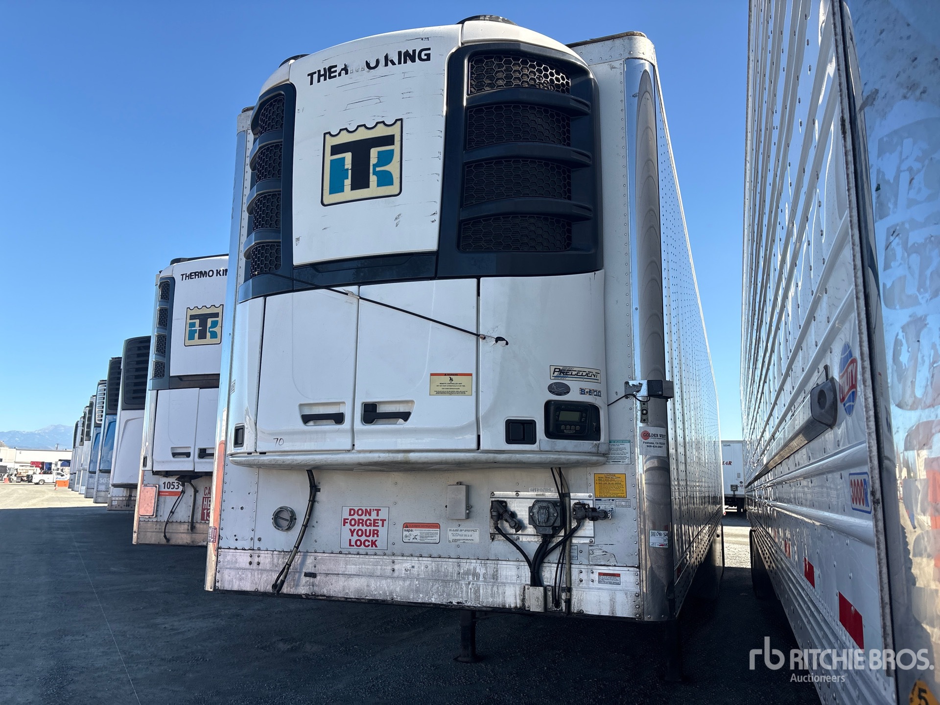 Located in Lane 40 Spot 81, Thermo King Precedent S-600 Refrigeration Unit, 21917 Total Hours, Aluminum/Steel Combination Frame, Air Ride Sliding Suspension, Side Skirts, Ducted Floor, Swing Door, 295/75R22.5 Tires 65000 lb GVWR