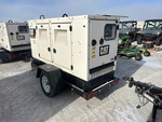 Cat C3.4B 4 Cylinder Diesel Engine, 59.4 kVA/47.5 kW Rated 3 Phase Output, 480 V / 240 V / 120 V Rated Voltage, 240 V & 120 V Receptacles, Sound Attenuated, Bottom Mounted Fuel Tank, Lunette Ring Carrier Trailer, Surge Brakes