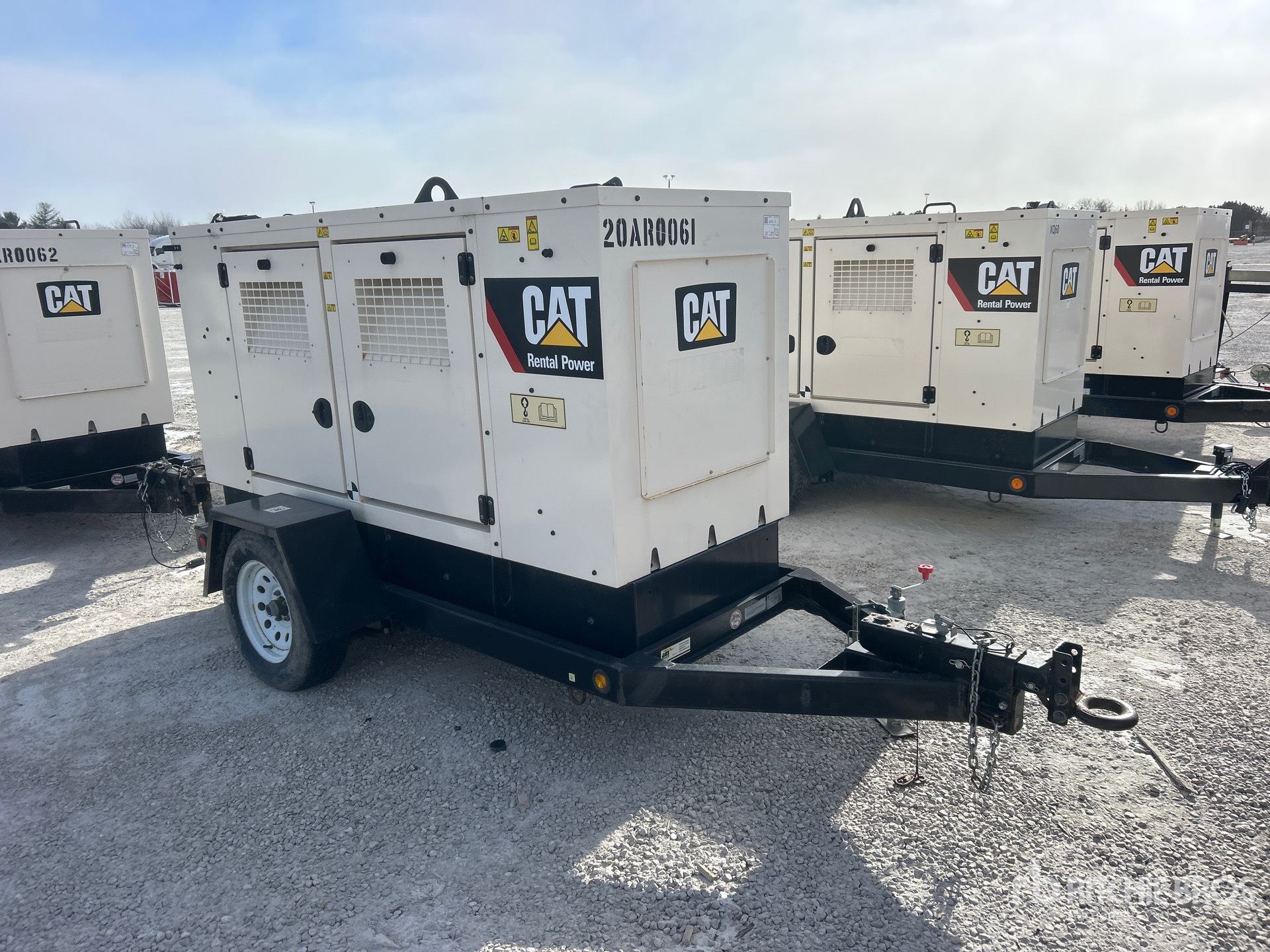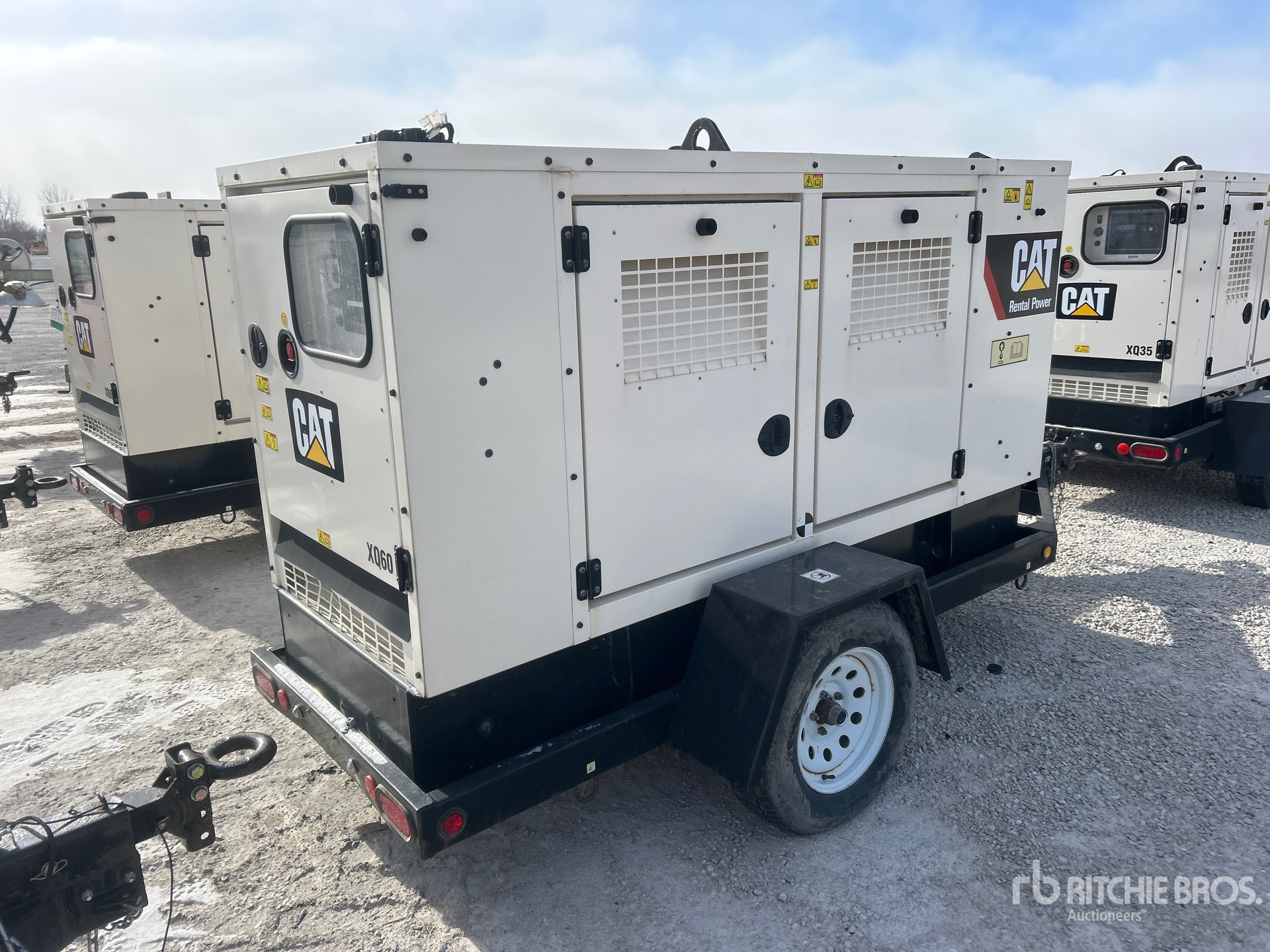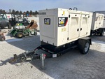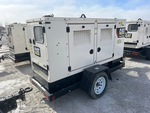 Cat C3.4B 4 Cylinder Diesel Engine, 59.4 kVA/47.5 kW Rated 3 Phase Output, 480 V / 240 V / 120 V Rated Voltage, 240 V & 120 V Receptacles, Sound Attenuated, Bottom Mounted Fuel Tank, Lunette Ring Carrier Trailer, Surge Brakes