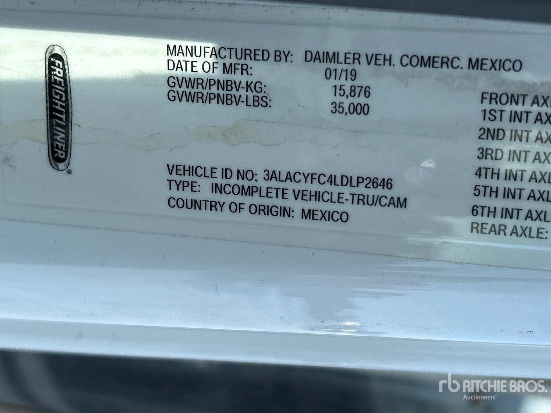 The detailed equipment information is limited in scope, and Ritchie Bros. Auctioneers has not inspected any aspects or components of the equipment other than those expressly set forth herein. Unless expressly stated, we make no representations or warranties, express or implied, concerning the equipment or its components, including without limitation any representations or warranties concerning functionality, conformity or compliance with any safety standard or requirement of any applicable authority or regulatory body, fitness for any particular purpose, or merchantability. You are strongly advised to perform your own detailed inspection of the equipment prior to bidding.