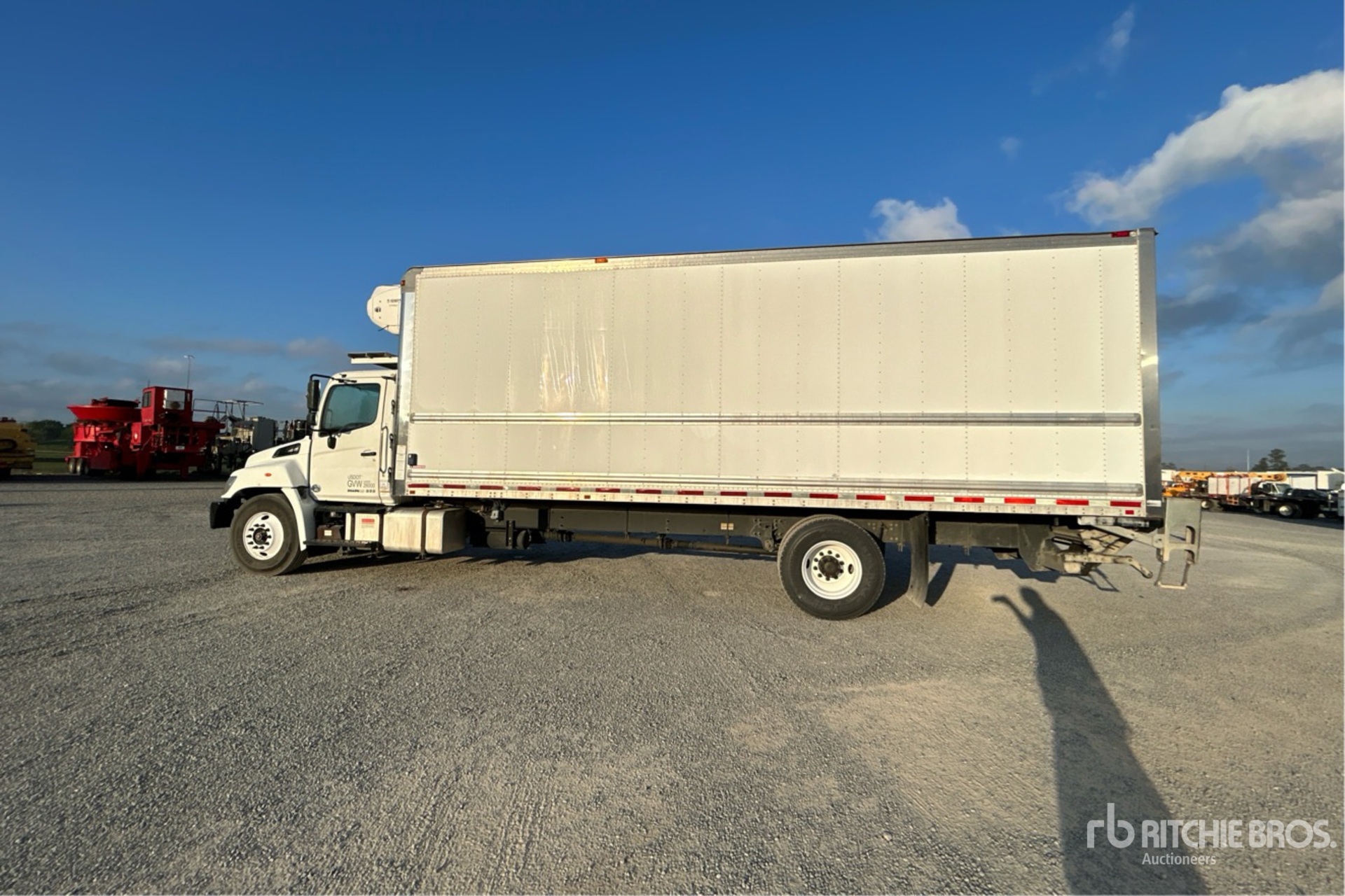 Located in Lane 35 Spot 40, Hino J08E 6 Cylinder 7.7 L Diesel 230 hp Engine, 2019 US EPA Label, Requires Diesel Exhaust Fluid, Automatic Transmission, 10000 lb Front Axle, 19000 lb Rears, 25950 lb GVWR, 11R22.5, Air Ride Suspension, 272 in Wheelbase, Thermo King T-1080R Whisper Reefer Unit, Morgan 26 ft x 102 in Wide x 103 in High Body, Curbside Door, Liftgate, Professionally-Maintained-Fleet-Vehicle-PAG