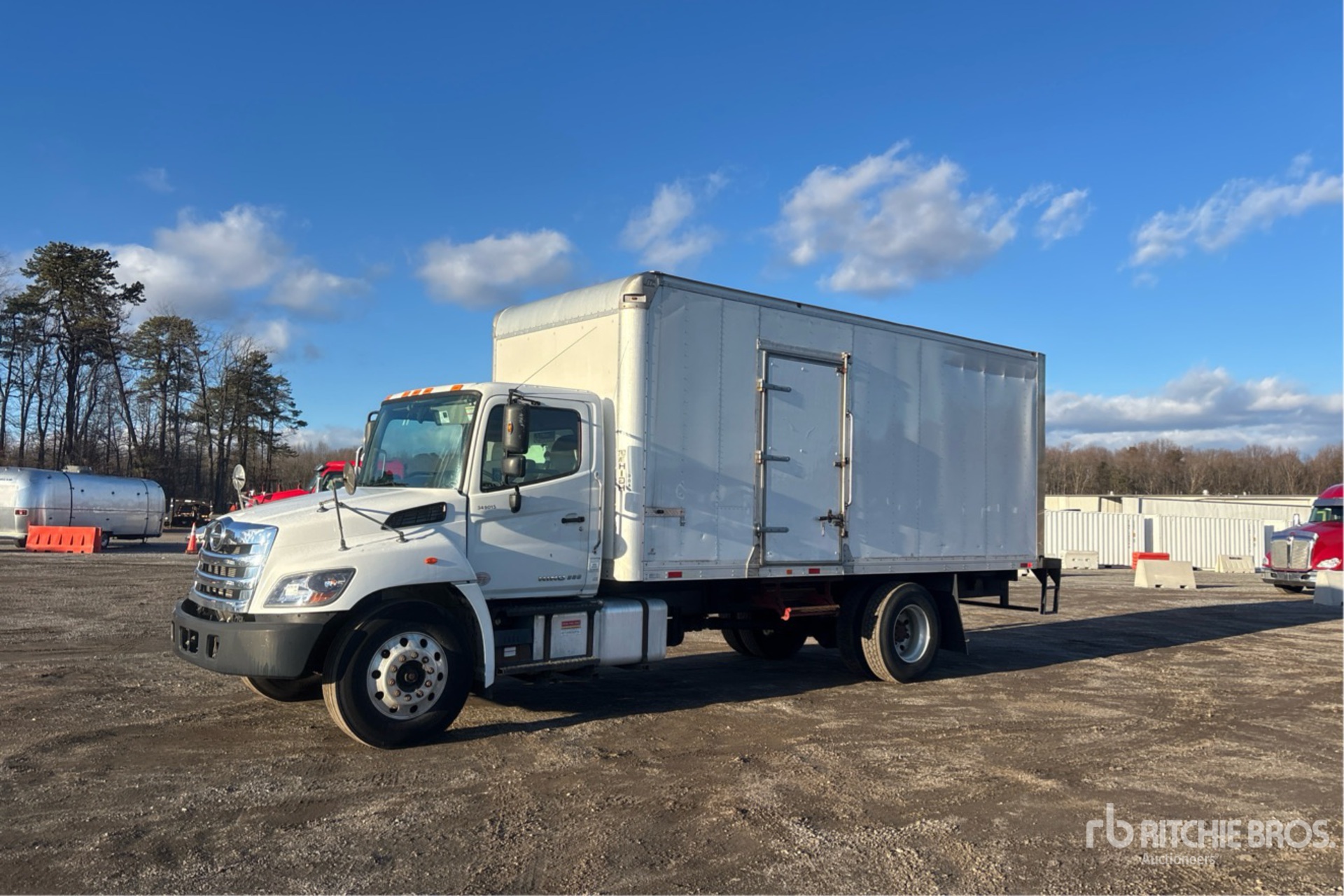 Located in Lane 26 Spot 53, Hino J08E 7.6 L Diesel 260 hp Engine, 4682 Engine hrs, Automatic Transmission, 12000 lb Front Axle, 21000 lb Rears, 33000 lb GVWR, Aluminum Wheels, 11R22.5, Air Ride Suspension, 224 in Wheelbase, Supreme 20 ft x 96 in Wide x 97 in High Body, Curbside Door, Walk-Up Ramp