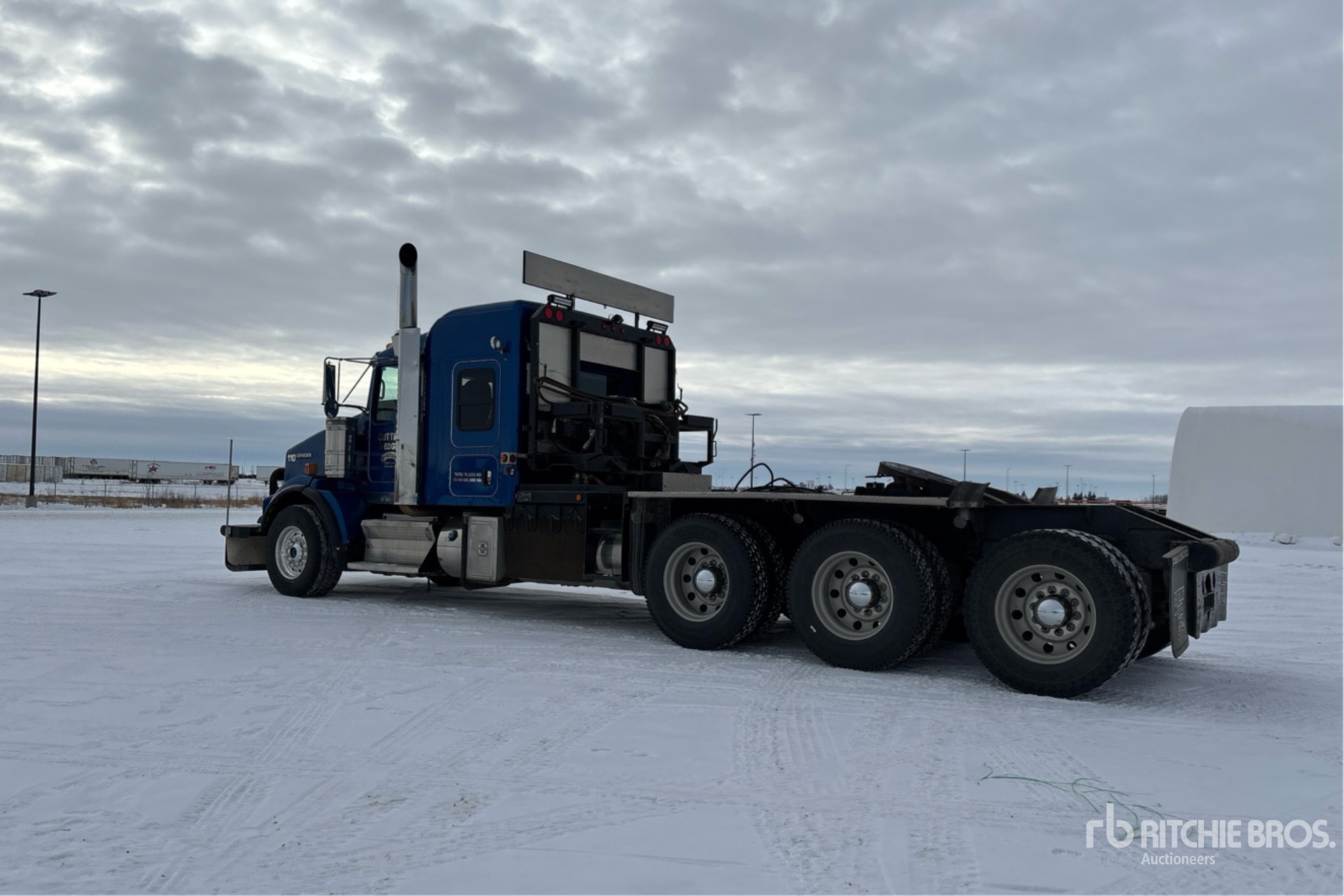 Located in Lane 38 Spot 2, Cummins X15 6 Cylinder 15 L Diesel Engine, 2019 US EPA Label, 6656 Engine hrs, Engine Brake, Eaton Fuller RTLO-20918B 18-Speed Manual Transmission, Triple Differential Locks, 16000 lb Front Axle, 57000 lb Rears, Meritor RZ-XX-166PWT Drive Axles, 4.30:1 Axle Ratio, 73000 lb GVWR, Air Ride Cab, 52 in Mid Roof Sleeper Cab, Aluminum Wheels, 385/65R22.5 Front Tires, 11R24.5 Rear Tires, Neway Air Ride Suspension, 270 in Wheelbase, PTO, 6 ft x 104 in Bed, Braden 80000 lb Winch, Lennox Truck Bed