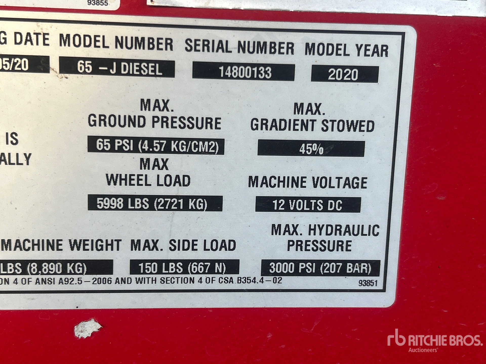 The detailed equipment information is limited in scope, and Ritchie Bros. Auctioneers has not inspected any aspects or components of the equipment other than those expressly set forth herein. Unless expressly stated, we make no representations or warranties, express or implied, concerning the equipment or its components, including without limitation any representations or warranties concerning functionality, conformity or compliance with any safety standard or requirement of any applicable authority or regulatory body, fitness for any particular purpose, or merchantability. You are strongly advised to perform your own detailed inspection of the equipment prior to bidding.