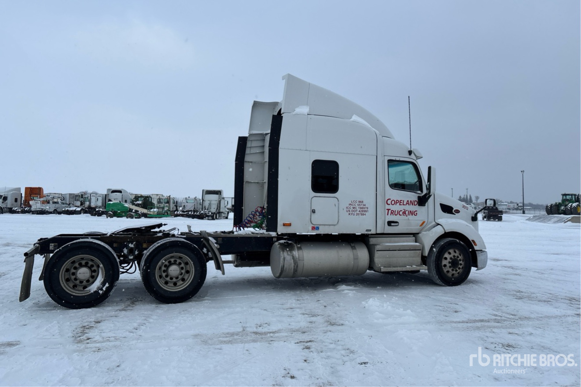 Paccar MX-13 415 hp Engine, 2019 US EPA Label, Automated Transmission, 12000 lb Front Axle, 40000 lb Rears, 52000 lb GVWR, 63 in Flat Top Sleeper Cab, 246 in Wheelbase, Air Suspension, Aluminum Wheels, 295/75R22.5 Front Tires, 275/80R22.5 Rear Tires, Air Sliding 5th Wheel, Dual Fuel Tanks