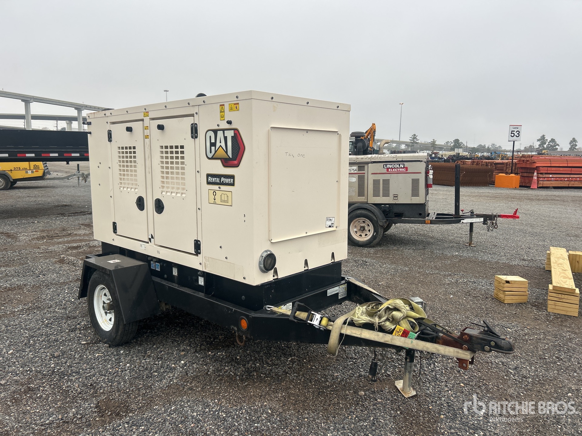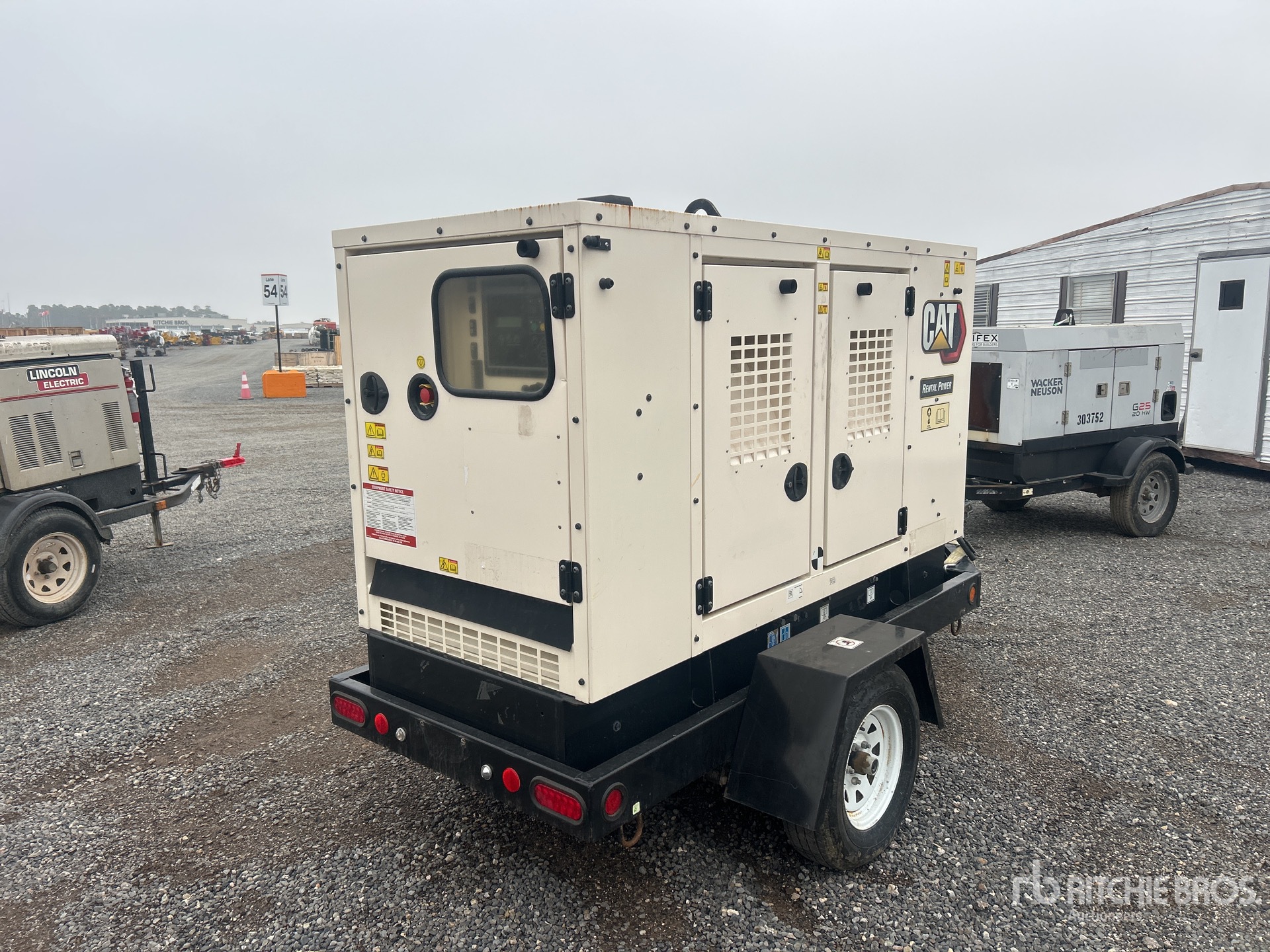 Cat C2.2 4 Cylinder 36.4 kW 2.22 L Diesel Engine, 35 kVA/27 kW Rated 3 Phase Output, 480 V / 208 V / 240 V Rated Voltage, Ball Hitch Carrier Trailer