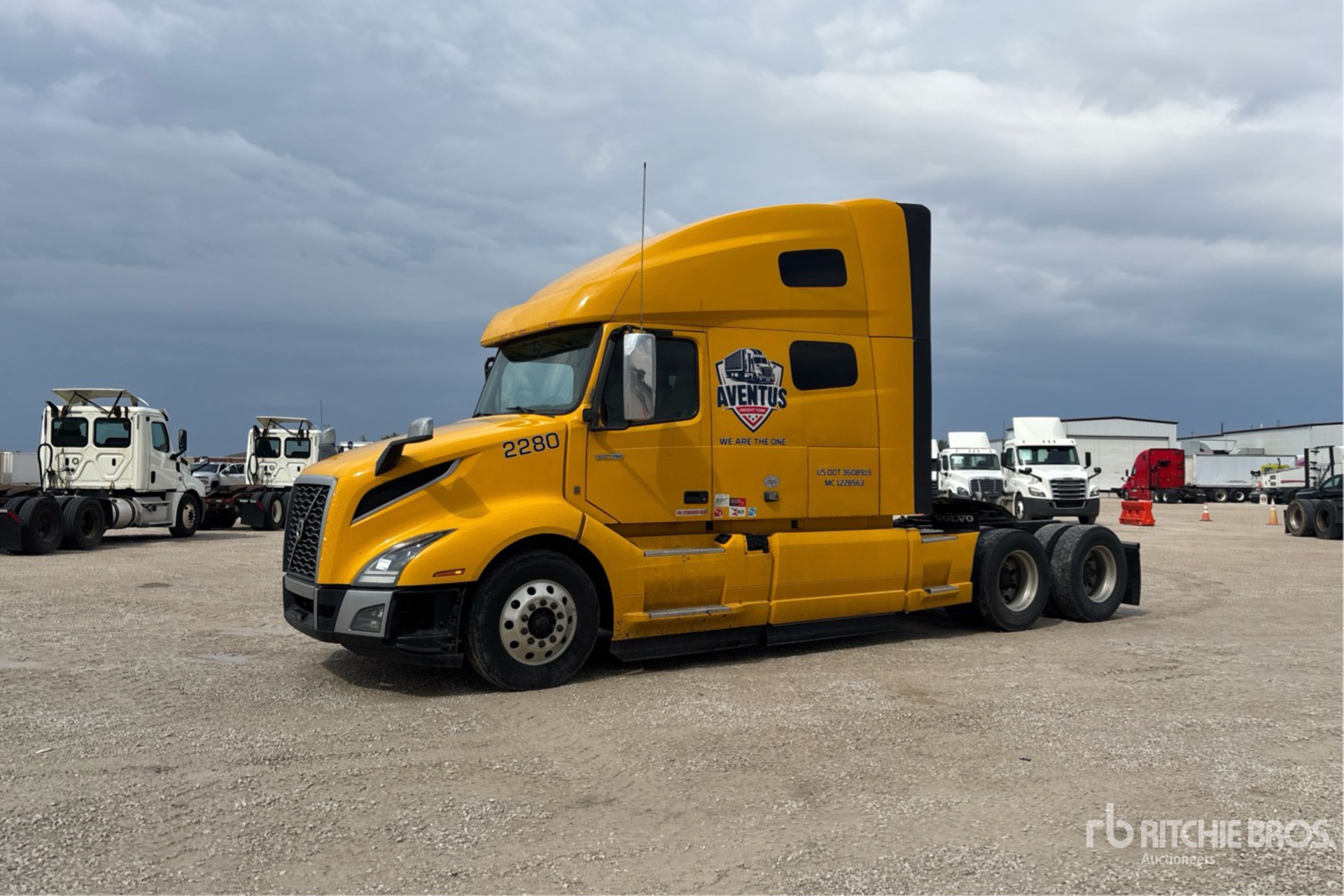 Volvo D13 455 hp Engine, 2021 US EPA Label, 19982 Engine hrs, Volvo ATO2612F 12-Speed Automated Transmission, 12350 lb Front Axle, 37478 lb Rears, 49828 lb GVWR, Engine Brake, Differential Lock, 61 in High Rise Sleeper Cab, Bunk Beds, Bunk Heater, 225 in Wheelbase, Air Suspension, Aluminum Wheels, 295/75R22.5, Air Sliding 5th Wheel, Dual Fuel Tanks