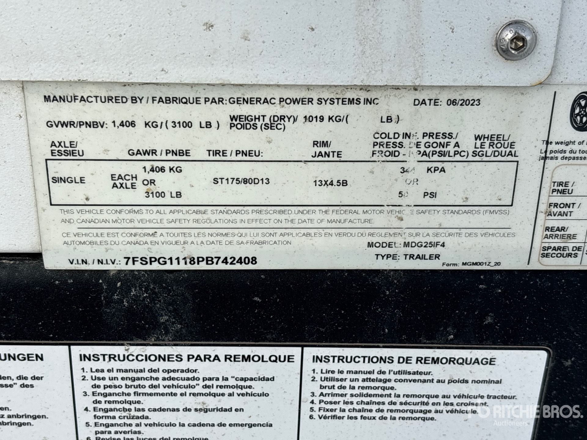 The detailed equipment information is limited in scope, and Ritchie Bros. Auctioneers has not inspected any aspects or components of the equipment other than those expressly set forth herein. Unless expressly stated, we make no representations or warranties, express or implied, concerning the equipment or its components, including without limitation any representations or warranties concerning functionality, conformity or compliance with any safety standard or requirement of any applicable authority or regulatory body, fitness for any particular purpose, or merchantability. You are strongly advised to perform your own detailed inspection of the equipment prior to bidding.