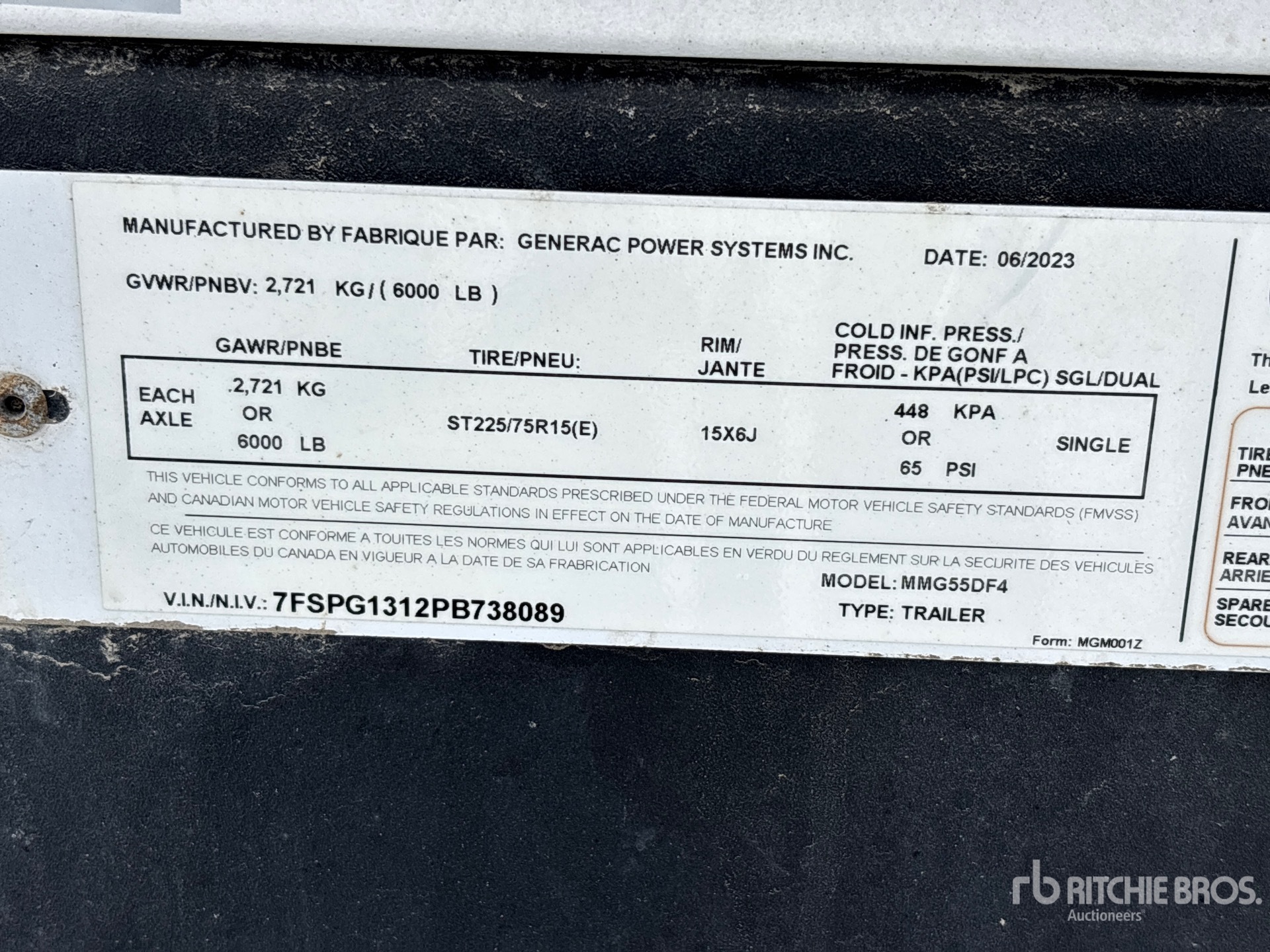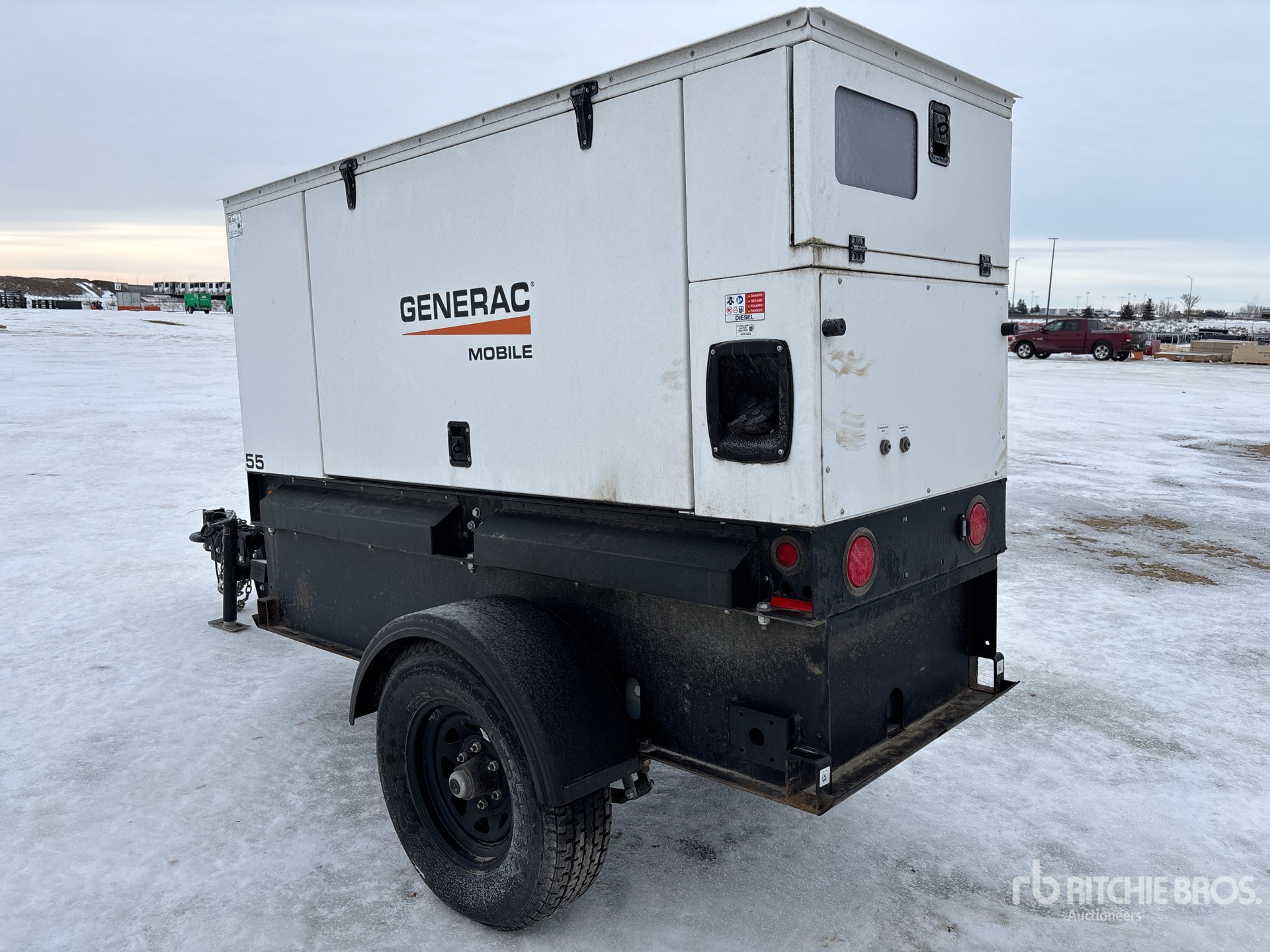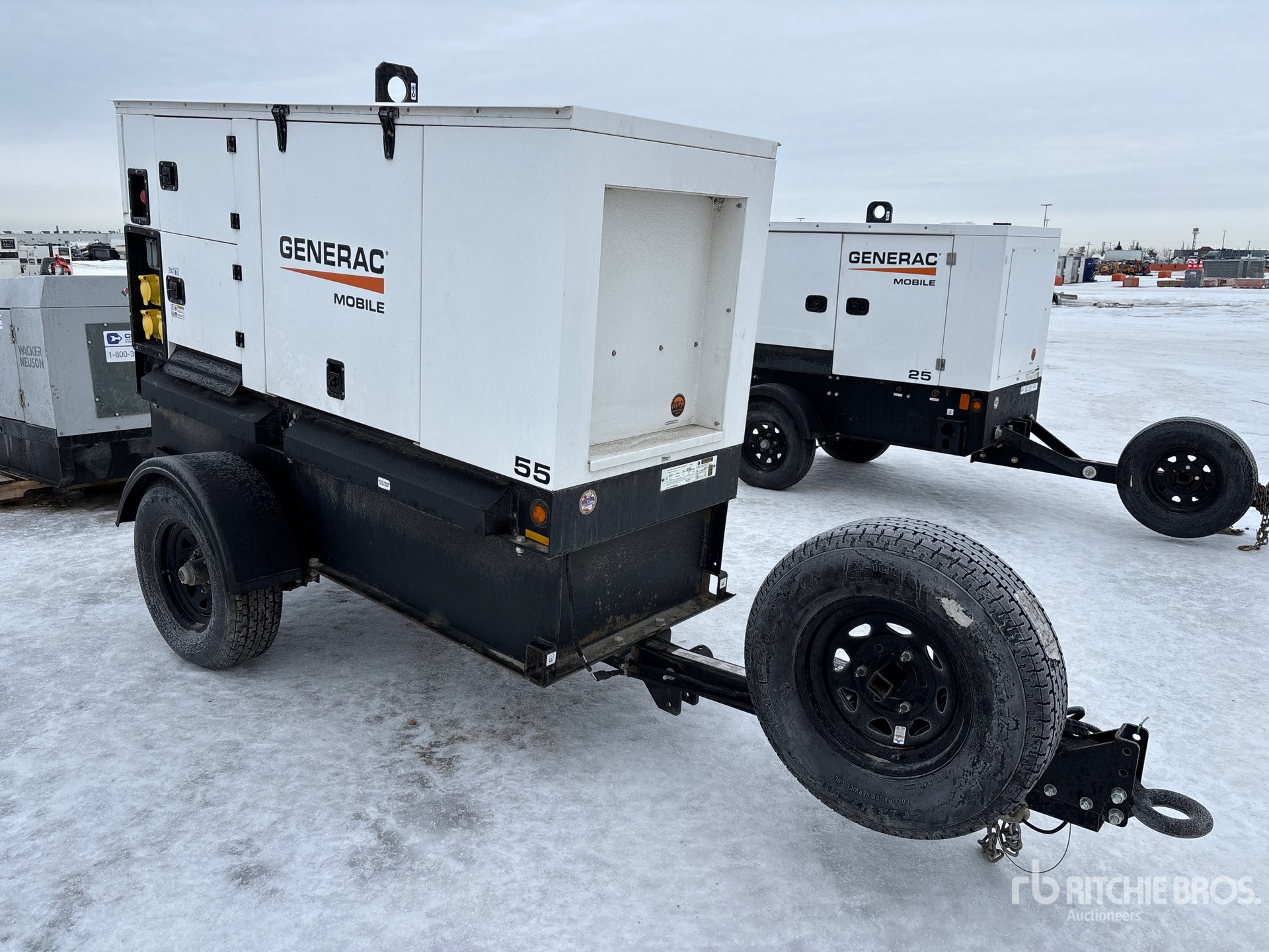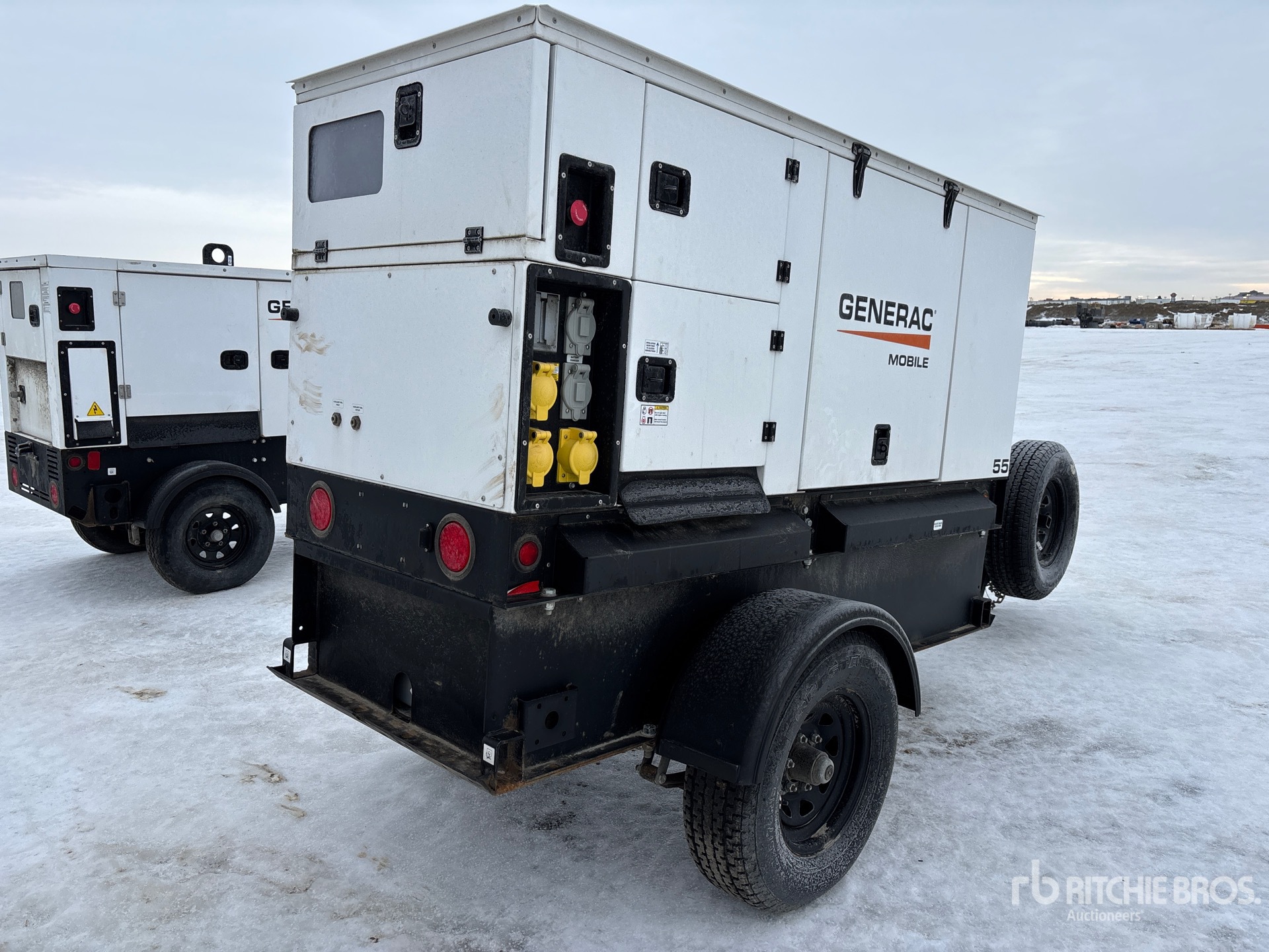 John Deere 3 Cylinder Diesel Engine, 55 kVA/44 kW Rated 3 Phase Output, 208 V / 480 V / 240 V Rated Voltage, 42 kVA,/42 kW, Rated Single Phase Output, 240 V Rated Voltage, 240 V & 120 V Receptacles, Sound Attenuated, Bottom Mounted Fuel Tank, Lunette Ring Carrier Trailer