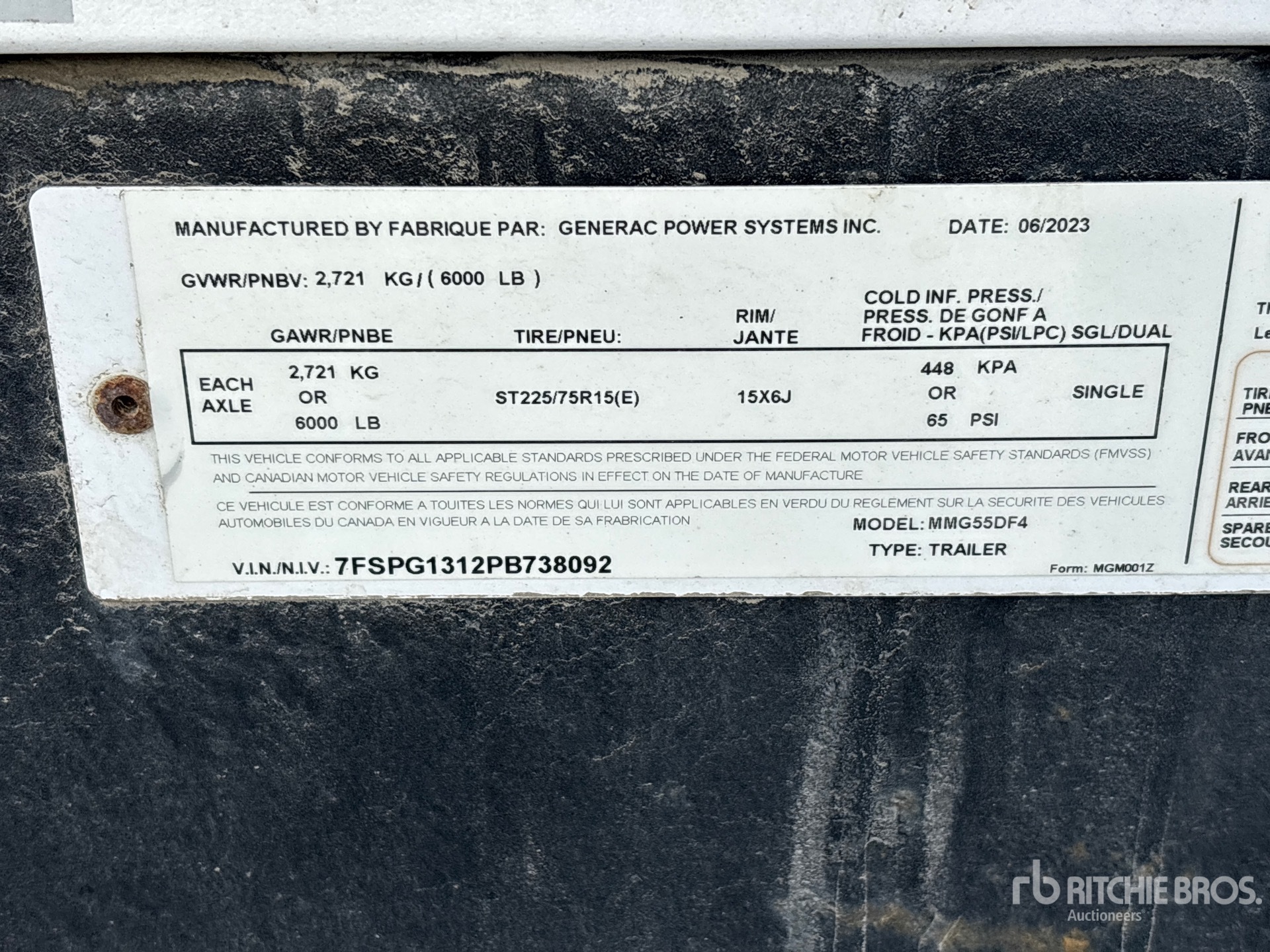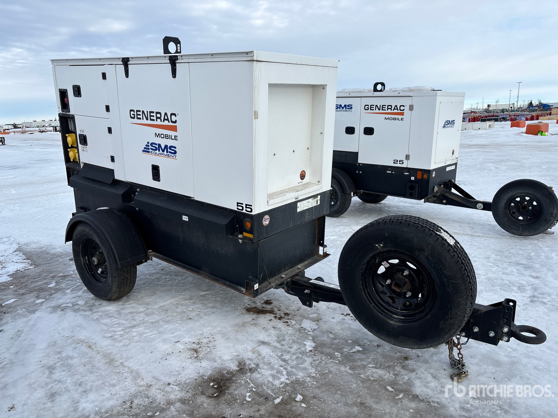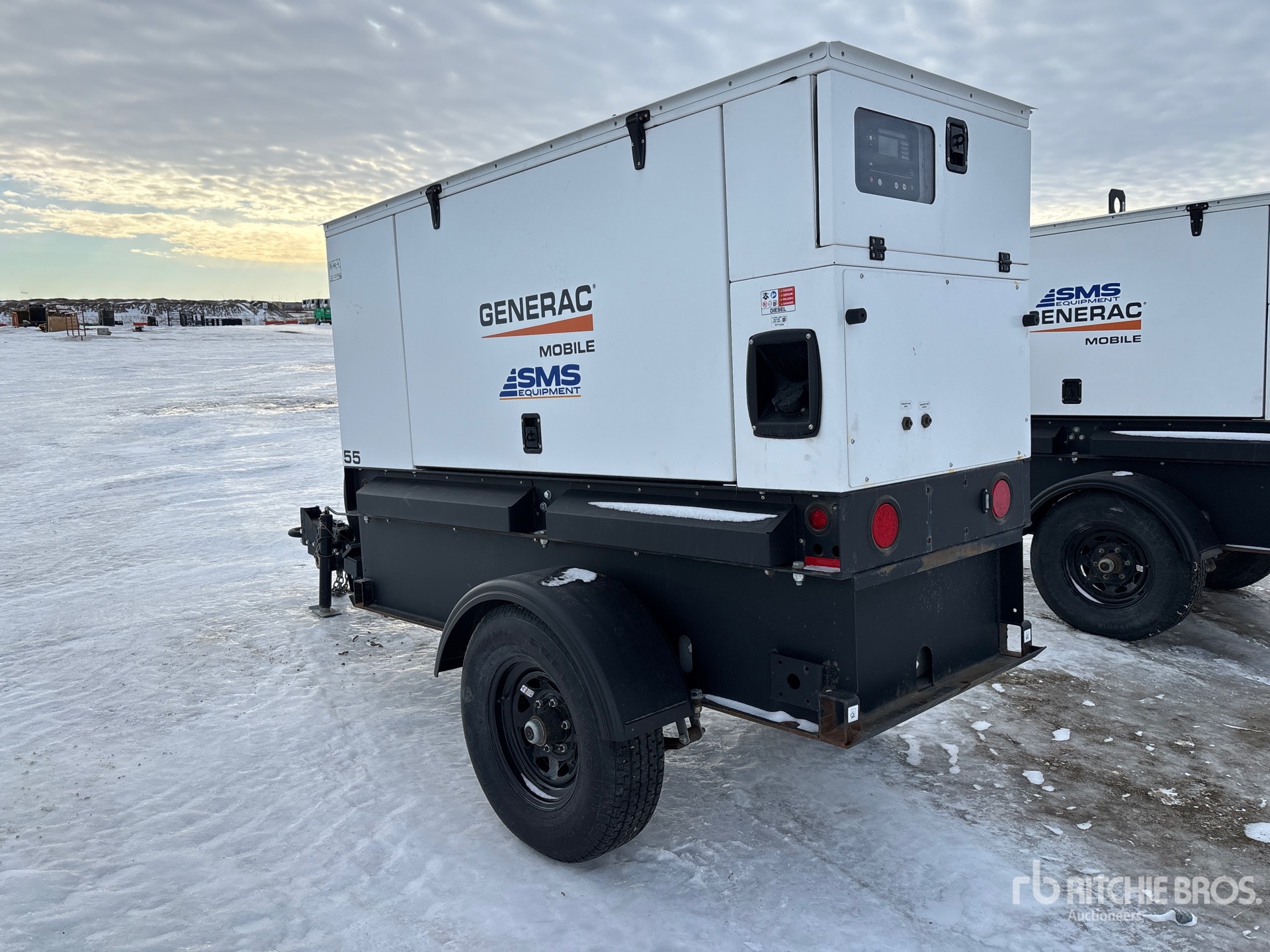 John Deere 3 Cylinder Diesel Engine, 55 kVA/44 kW Rated 3 Phase Output, 208 V / 480 V / 240 V Rated Voltage, 42 kVA,/42 kW, Rated Single Phase Output, 240 V Rated Voltage, 240 V & 120 V Receptacles, Sound Attenuated, Bottom Mounted Fuel Tank, Lunette Ring Carrier Trailer