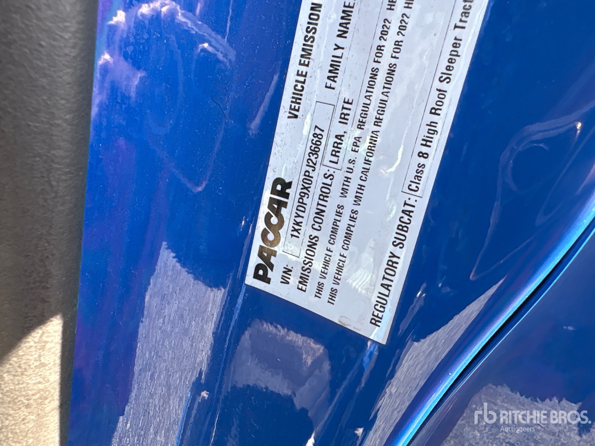 Paccar MX-13 Engine, 2022 US EPA Label, Paccar PO-16F112C 12-Speed Automated, 12350 lb Front Axle, 40000 lb Rears, 52350 lb GVWR, Engine Brake, 75 in High Rise Sleeper Cab, Bunk Beds, Bunk Heater, 256 in Wheelbase, Air Suspension, Aluminum Wheels, 295/75R22.5, Air Sliding 5th Wheel, Dual Fuel Tanks