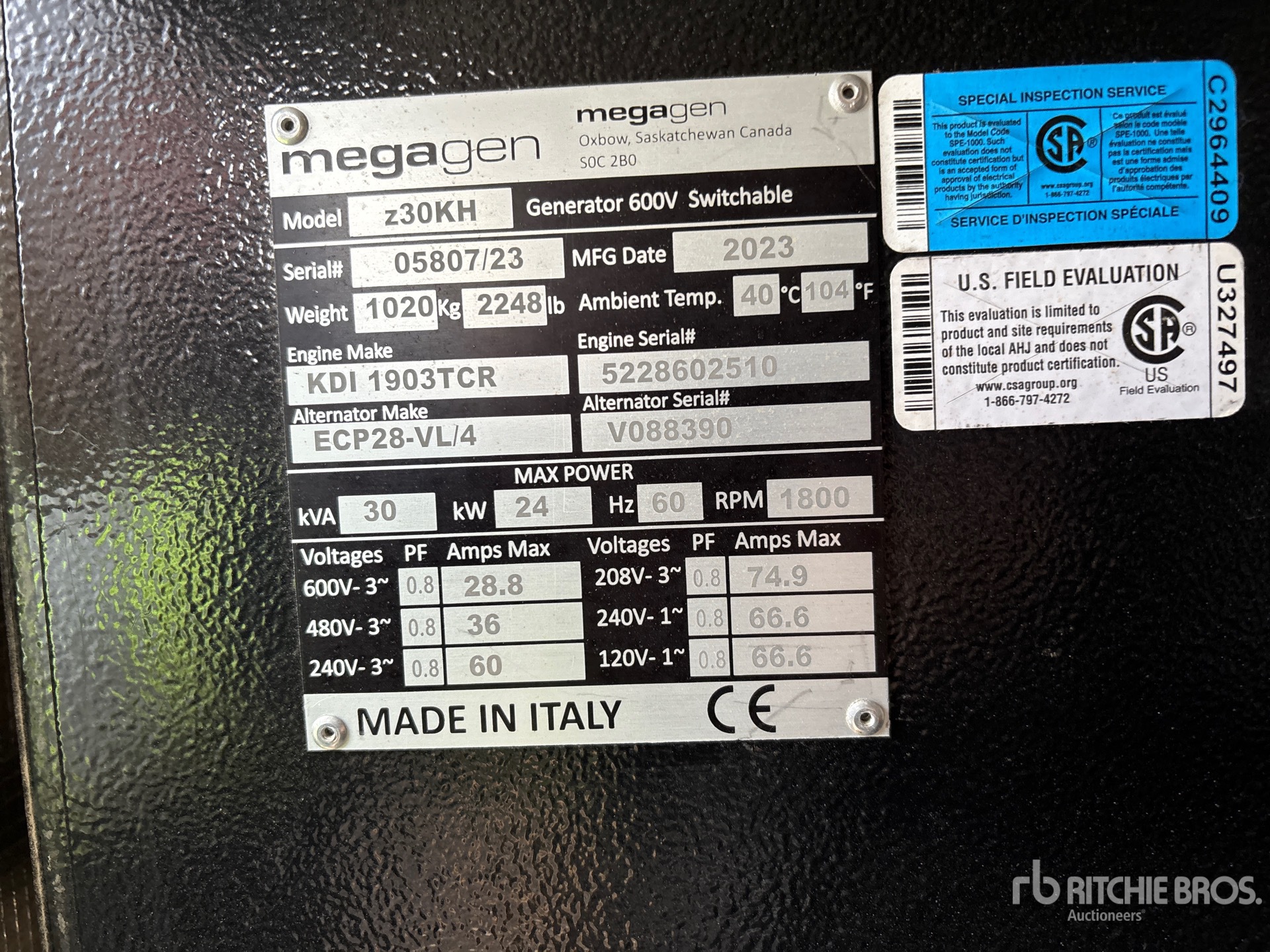2023 Megagen z30KH 24 kW Skid-Mounted Generator Set