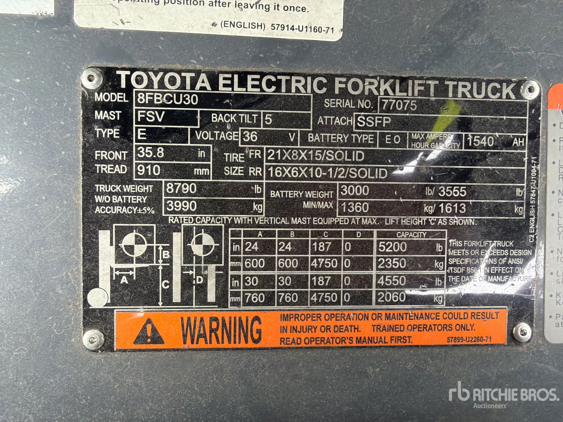 The detailed equipment information is limited in scope, and Ritchie Bros. Auctioneers has not inspected any aspects or components of the equipment other than those expressly set forth herein. Unless expressly stated, we make no representations or warranties, express or implied, concerning the equipment or its components, including without limitation any representations or warranties concerning functionality, conformity or compliance with any safety standard or requirement of any applicable authority or regulatory body, fitness for any particular purpose, or merchantability. You are strongly advised to perform your own detailed inspection of the equipment prior to bidding.