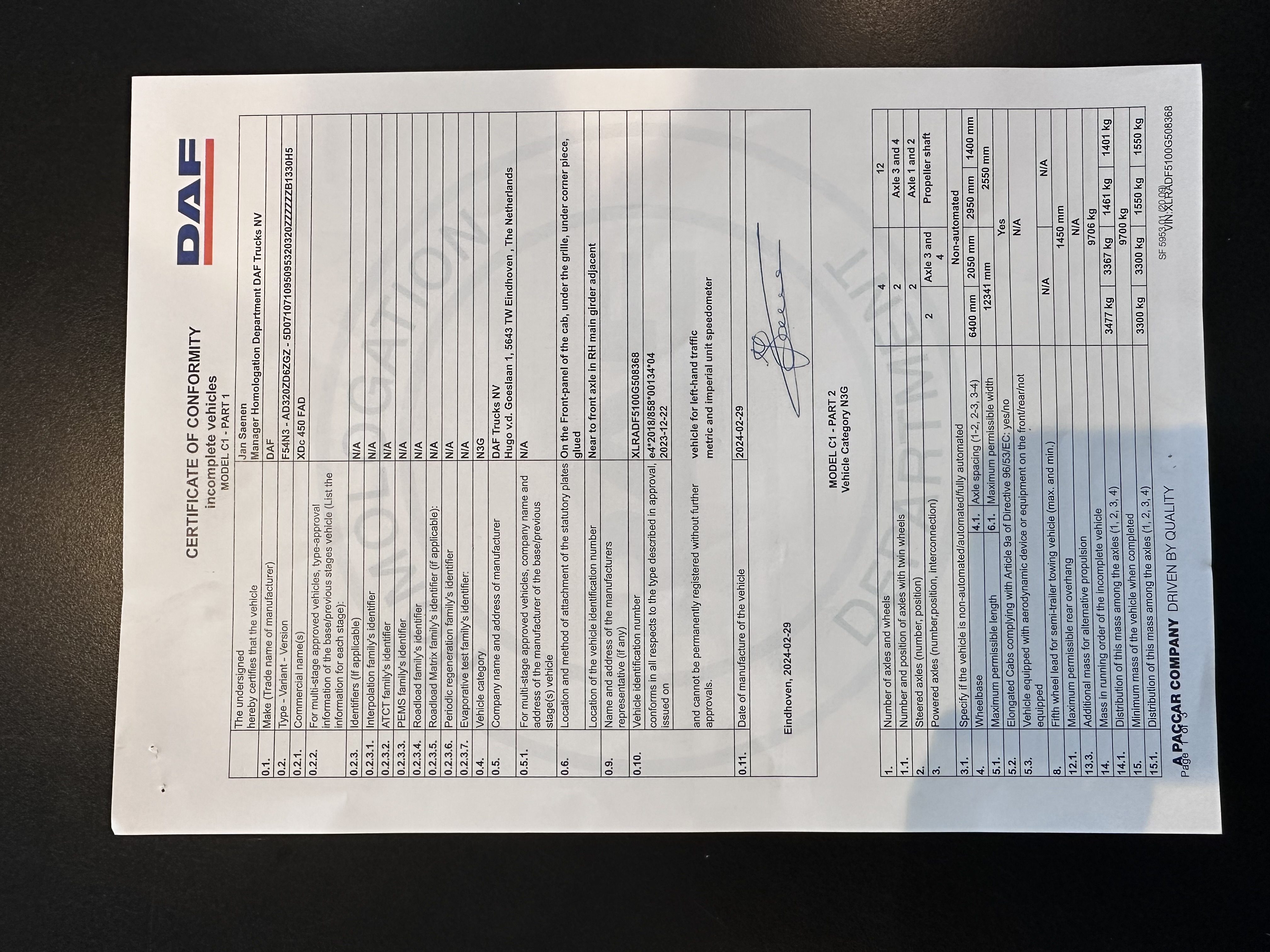 ** Copy of COC Certificate Available for Cab & Chassis Only ** This item is located outside of our yard. Please arrange an appointment for viewing via email: beneluxmail@rbauction.com. Appointment requests are accepted until 20th March, 5pm. **