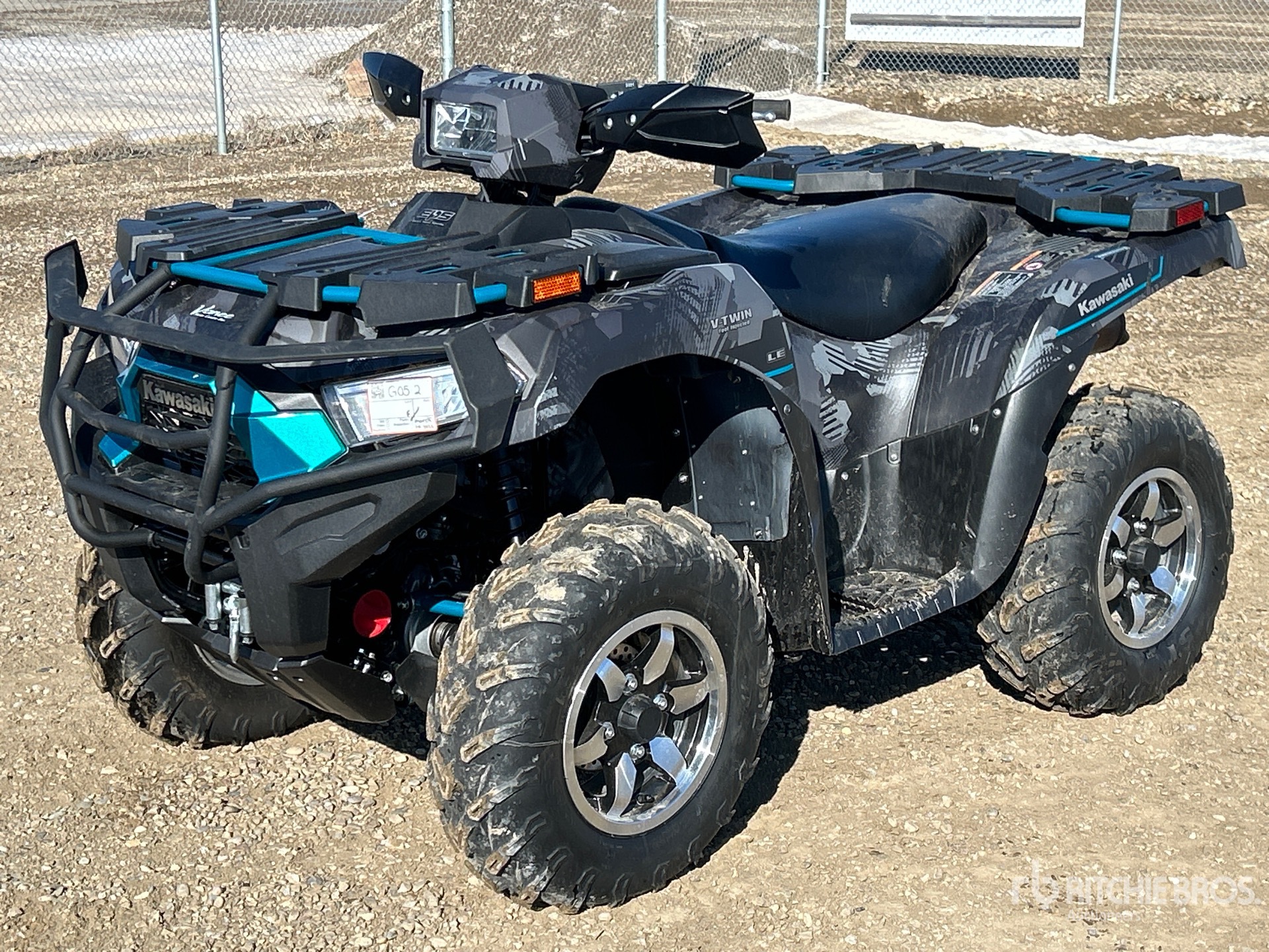 Electric Start, Liquid Cooled, Fuel Injection, Power Steering, Forward Gears w/ Reverse, 2024 US EPA Label, Kawasaki KVF750 2 Cylinder 750 cc Gasoline Engine, Hand Warmers, Brush Guard, Warn 2500lb Winch