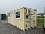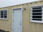 One-Way, Man Door, 20 ft x 8 ft Skid-Mounted Mobile Office, 20' x 8', 8' 6" High, (1) Swing-Out Door, (2) Windows w/Security Bars, Fork Pockets, Laminate Flooring, SunScreen, R13 Insulation, (1) Pioneer HVAC Mini-Split, (1) Electric Panel, LED Ceiling Lights, Interior Outlets, Wiring done to National Electric Code (NEC)