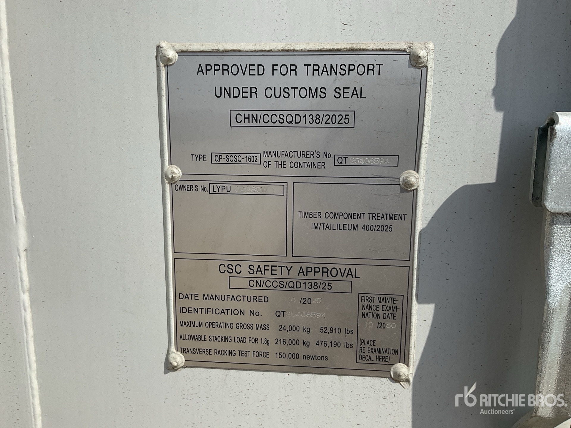 A qualified Ritchie Bros. employee collected detailed equipment information and performed functional tests on the key components of this asset. You, or a proxy, may also inspect any items on site prior to bidding on auction day.
