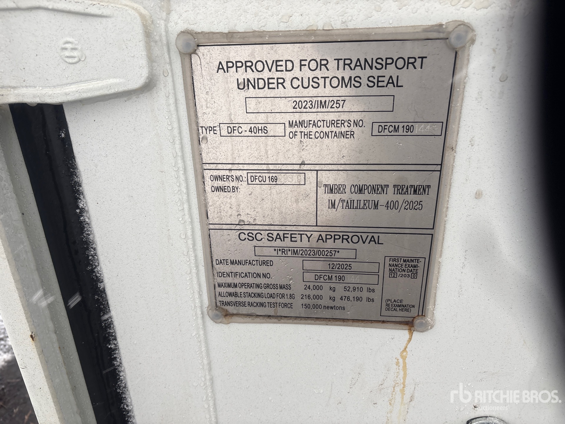 A qualified Ritchie Bros. employee collected detailed equipment information and performed functional tests on the key components of this asset. You, or a proxy, may also inspect any items on site prior to bidding on auction day.