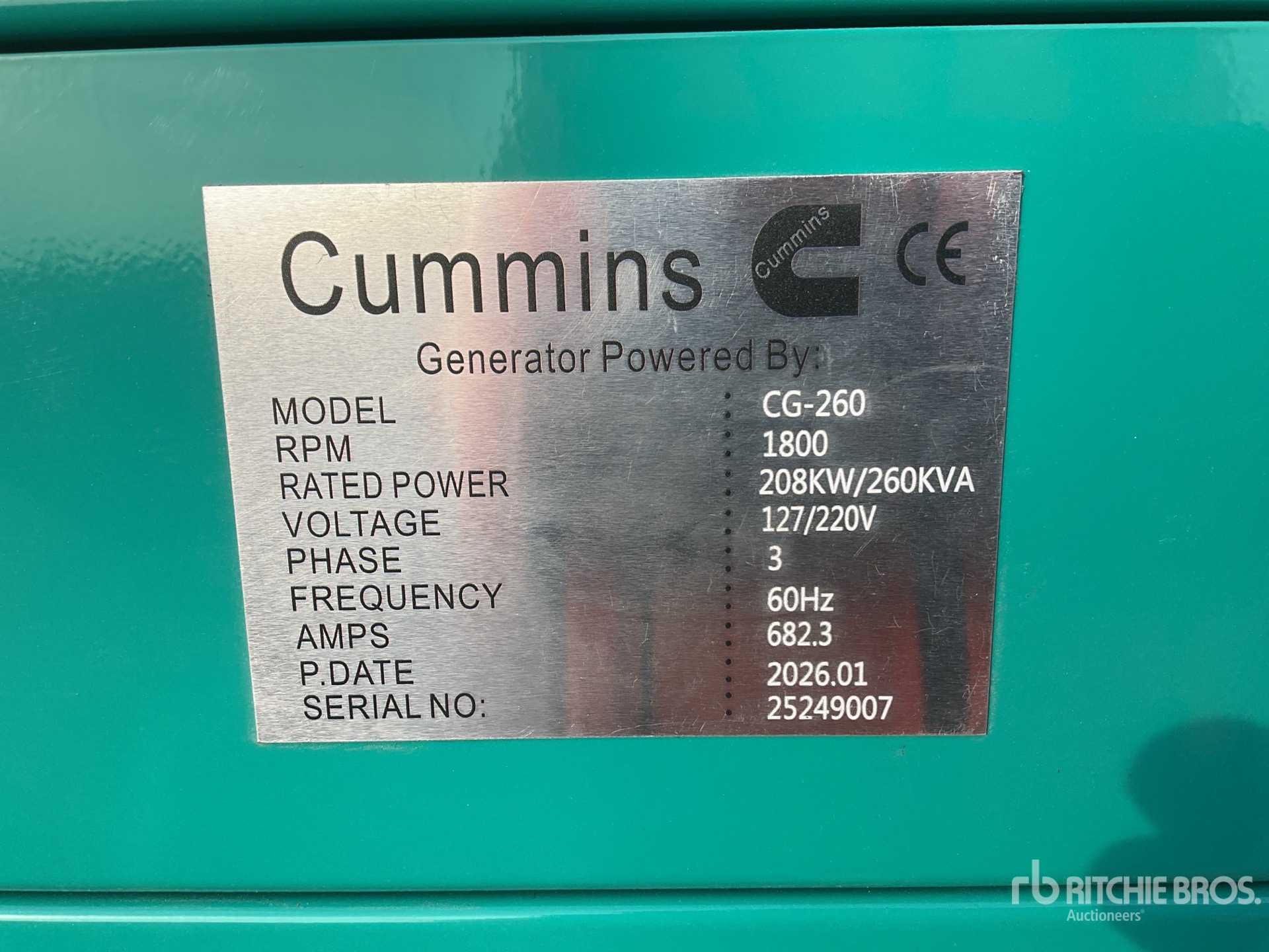 Dongfeng Cummins 6 Cylinder Diesel Engine, 260 kVA/127 kW Rated 3 Phase Output, / 127 V / 220 V Rated Voltage, Sound Attenuated, Bottom Mounted Fuel Tank