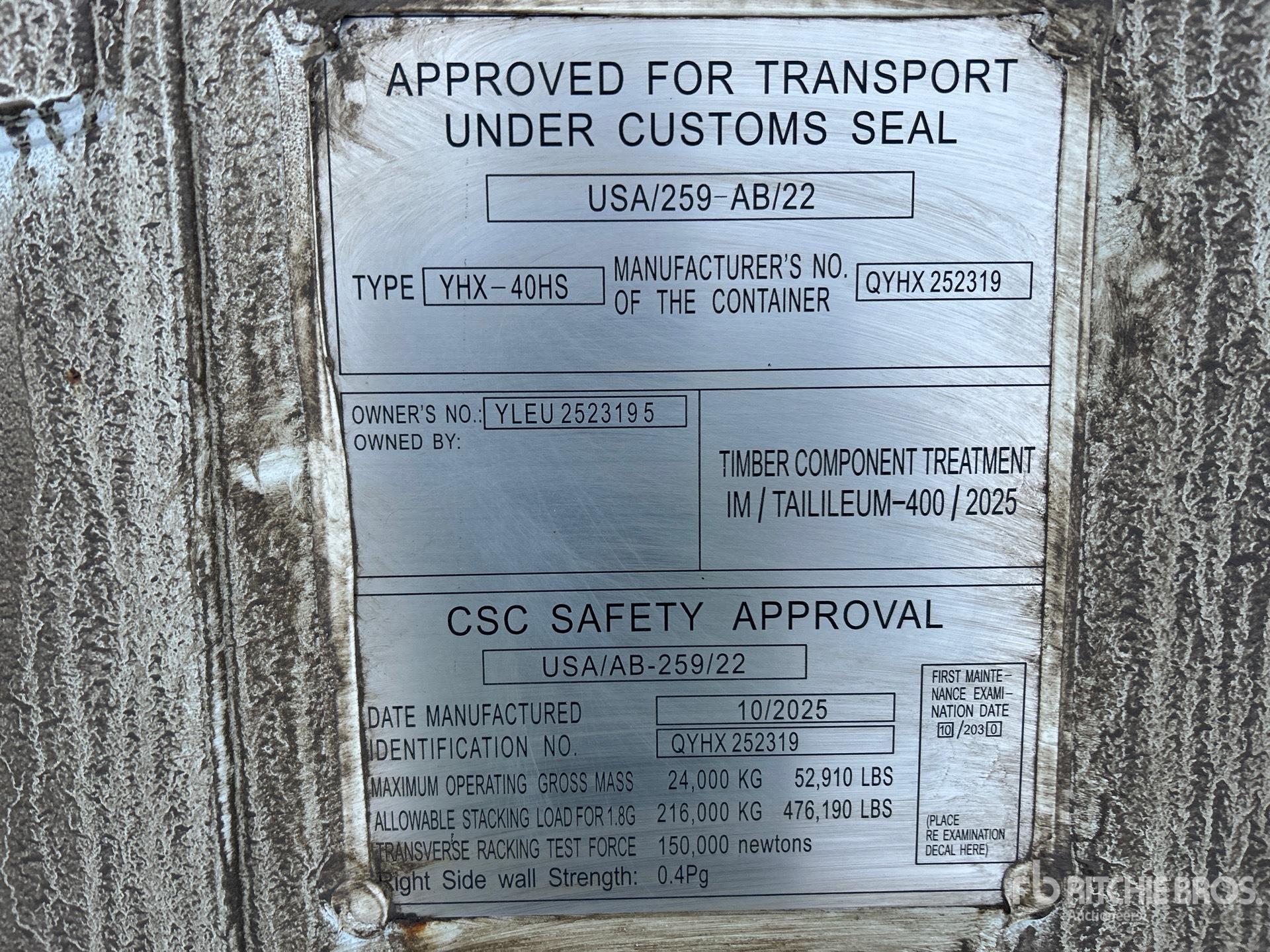 The detailed equipment information is limited in scope, and Ritchie Bros. Auctioneers has not inspected any aspects or components of the equipment other than those expressly set forth herein. Unless expressly stated, we make no representations or warranties, express or implied, concerning the equipment or its components, including without limitation any representations or warranties concerning functionality, conformity or compliance with any safety standard or requirement of any applicable authority or regulatory body, fitness for any particular purpose, or merchantability. You are strongly advised to perform your own detailed inspection of the equipment prior to bidding.