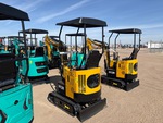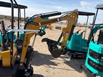 2026 US EPA Label, 2 ft 4 in Stick, Backfill Blade, 7 in Rubber Tracks, Manual Quick Coupler, 16 in Digging Bucket, Manual Thumb, Item is new/unused.