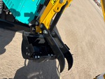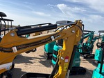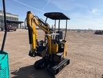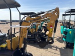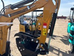 2025 US EPA Label, 2 ft 4 in Stick, Backfill Blade, 7 in Rubber Tracks, Manual Quick Coupler, 16 in Digging Bucket, Manual Thumb, Item is new/unused.
