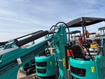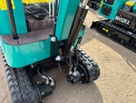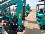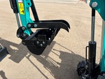 2025 US EPA Label, 2 ft 4 in Stick, Backfill Blade, 7 in Rubber Tracks, Manual Quick Coupler, 16 in Digging Bucket, Manual Thumb, Item is new/unused.