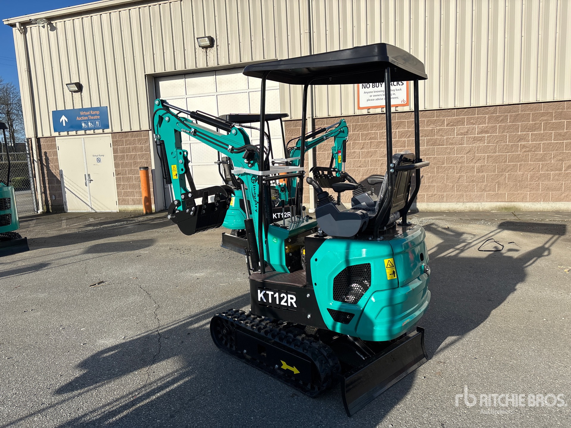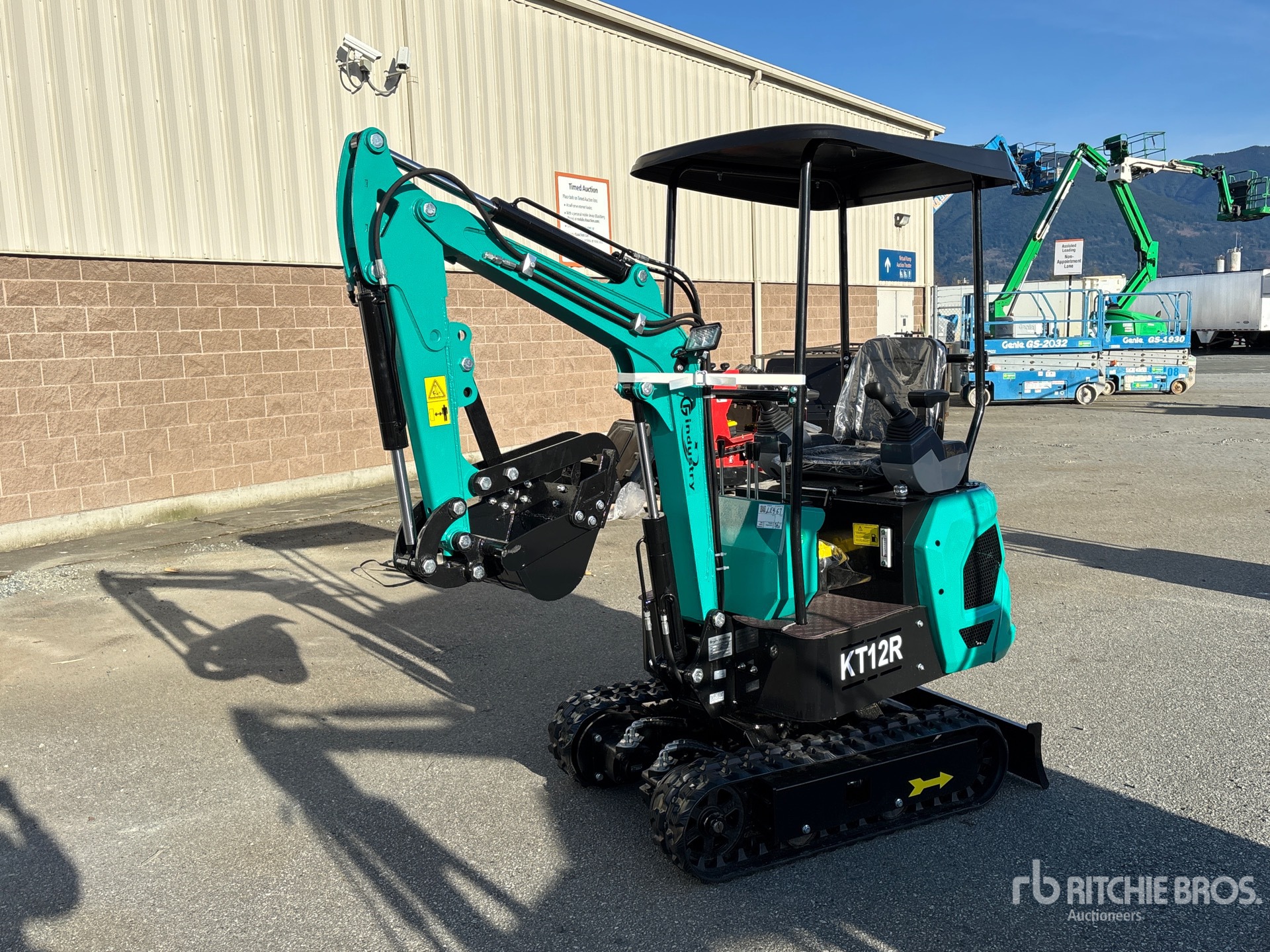 2026 US EPA Label, 2 ft 8 in Stick, Auxiliary Hydraulic Plumbing, Backfill Blade, 7 in Rubber Tracks, 16 in Digging Bucket, Manual Thumb, Item is new/unused