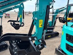 2025 US EPA Label, 2 ft 4 in Stick, Backfill Blade, 7 in Rubber Tracks, Manual Quick Coupler, 16 in Digging Bucket, Manual Thumb, Item is new/unused.