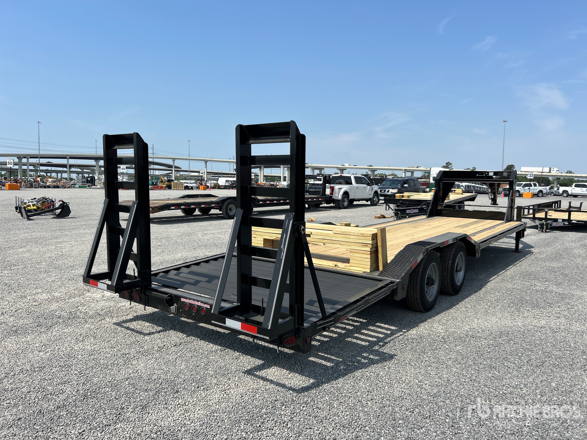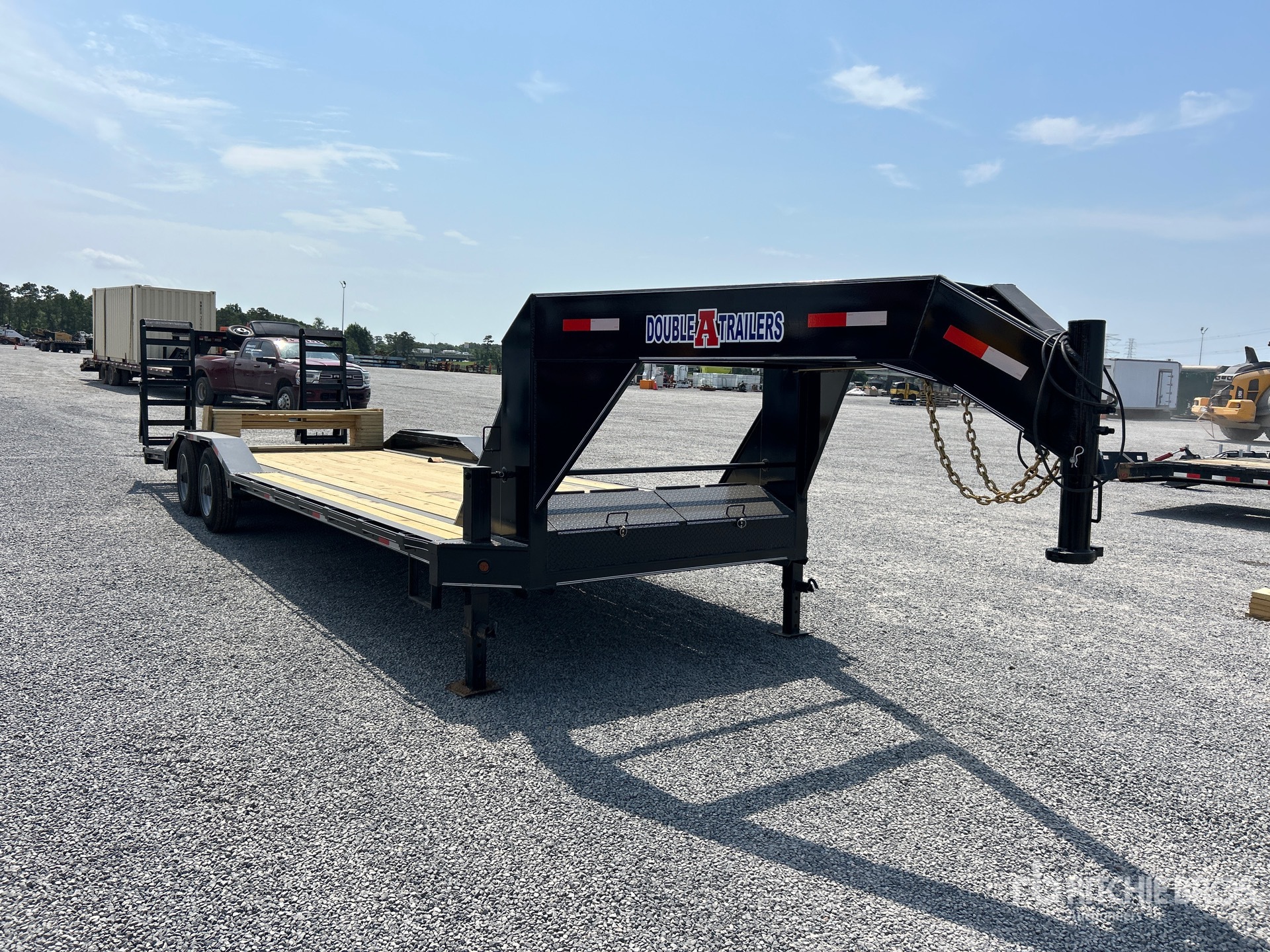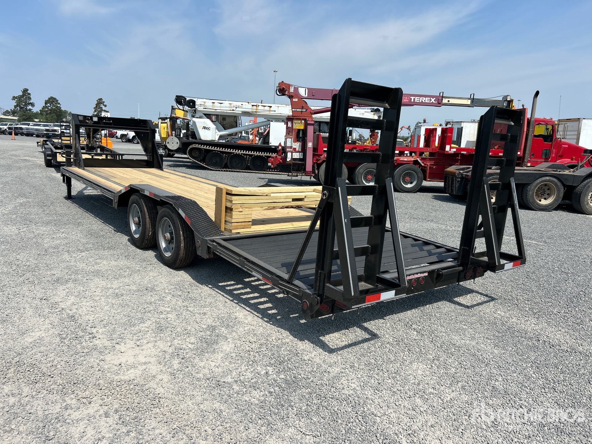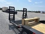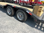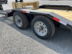 Torsion Axle, Electric Brakes, 23 ft Main Deck, 5 ft Fixed Dovetail, 80 in Usable Deck Width, 102 in Overall Deck Width, Storage Compartments, Deck Over Tires, Spring Assisted Ramps, Wood Flooring, 215/75R17.5 Tires, 20000 lb GVWR, 10,000 Torsion Axle 2-brakes Super Single Driver over Fender (28 5) Rectangle Tubing Frame & Neck 10 in Channel Drive Over Fender 3 in Channel Cross Members 2-12K DLJ's Stake Pockets and Rub Rail 5 ft Sand Up Ramps W/Spring Assist 2 in Treated Lumber Floor Locking Chain Box ST215/R17.5 Tires (16 ply) LED Lights