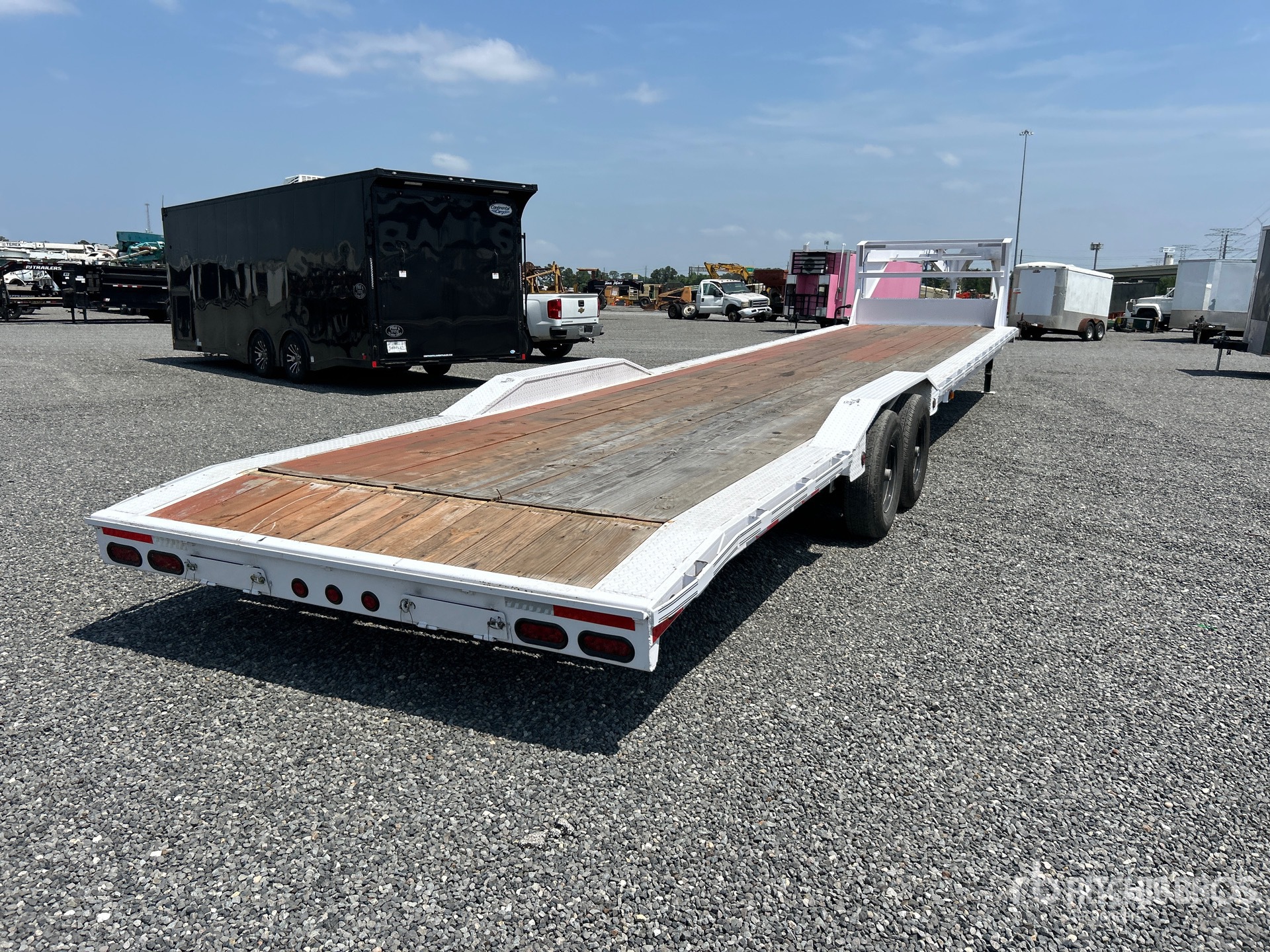 Spring Suspension, Electric Brakes, 38 ft Main Deck, 2 ft Fixed Dovetail, 96 in Usable Deck Width, 102 in Overall Deck Width, Storage Compartments, Deck Over Tires, Manual Ramps, Wood Flooring, 235/80R16 Tires, 15680 lb GVWR
