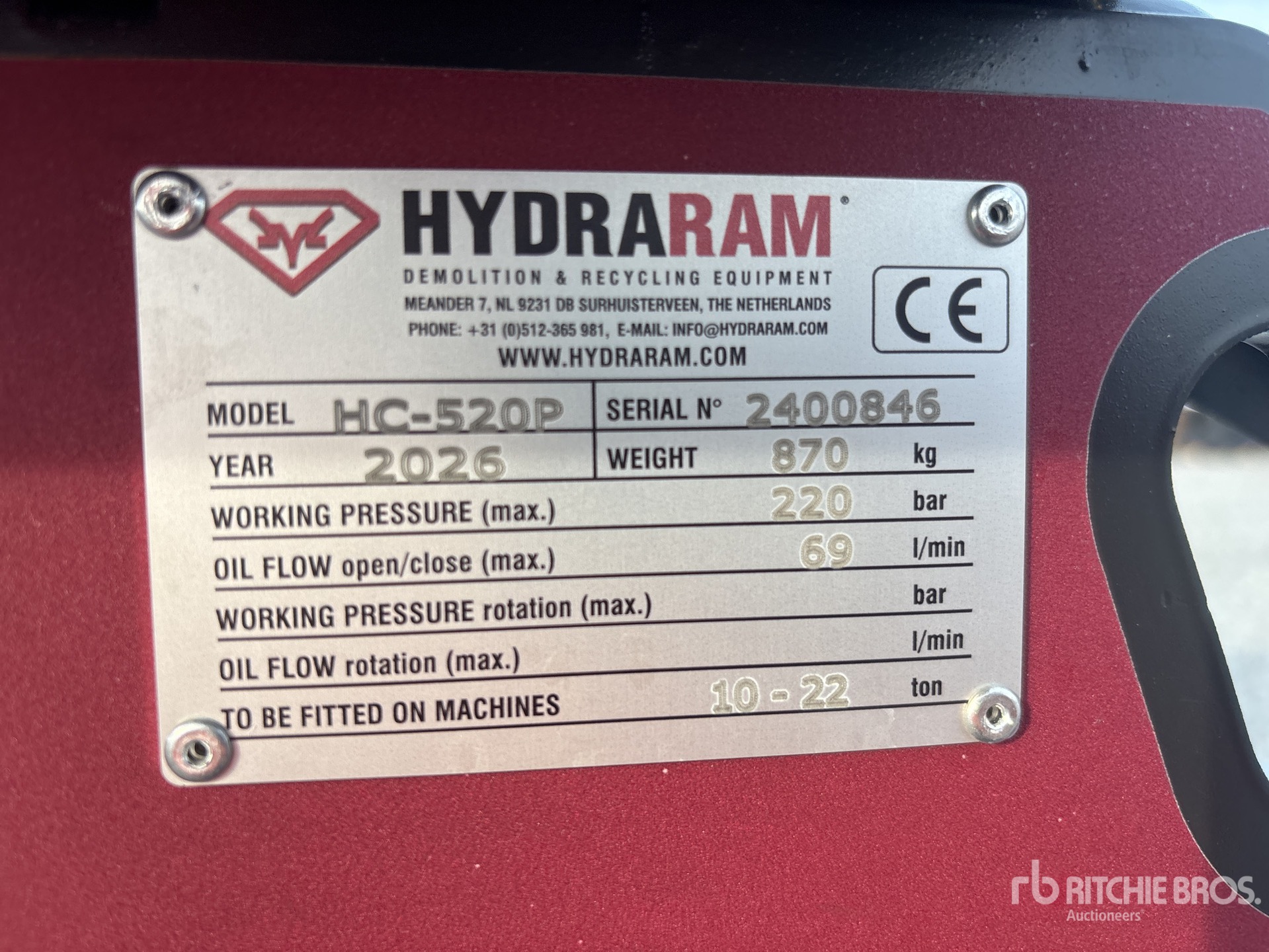 The detailed equipment information is limited in scope, and Ritchie Bros. Auctioneers has not inspected any aspects or components of the equipment other than those expressly set forth herein. Unless expressly stated, we make no representations or warranties, express or implied, concerning the equipment or its components, including without limitation any representations or warranties concerning functionality, conformity or compliance with any safety standard or requirement of any applicable authority or regulatory body, fitness for any particular purpose, or merchantability. You are strongly advised to perform your own detailed inspection of the equipment prior to bidding.
