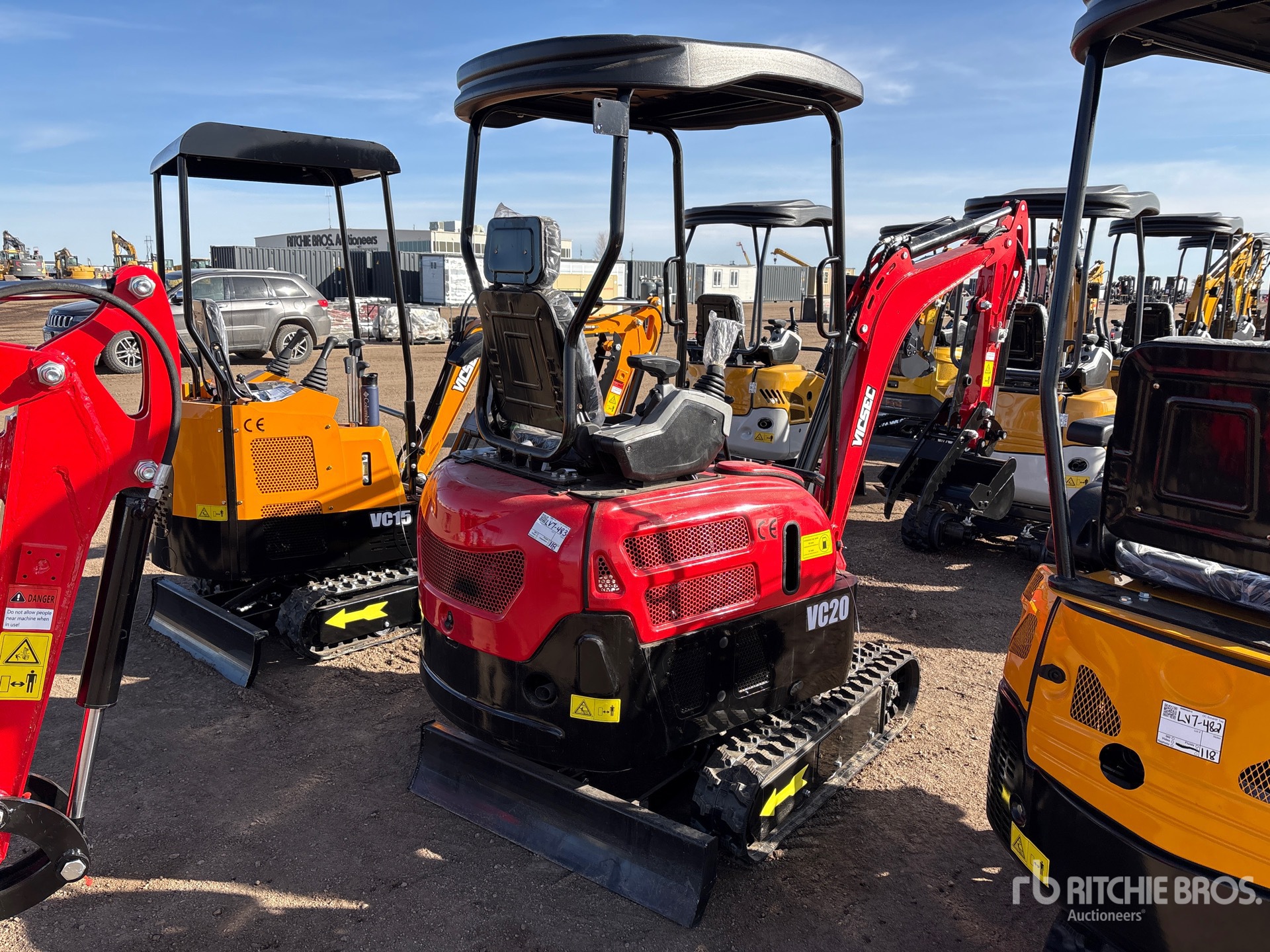 2 ft 7 in Stick, Backfill Blade, 7 in Rubber Tracks, Manual Quick Coupler, 17 in Digging Bucket, Manual Thumb
