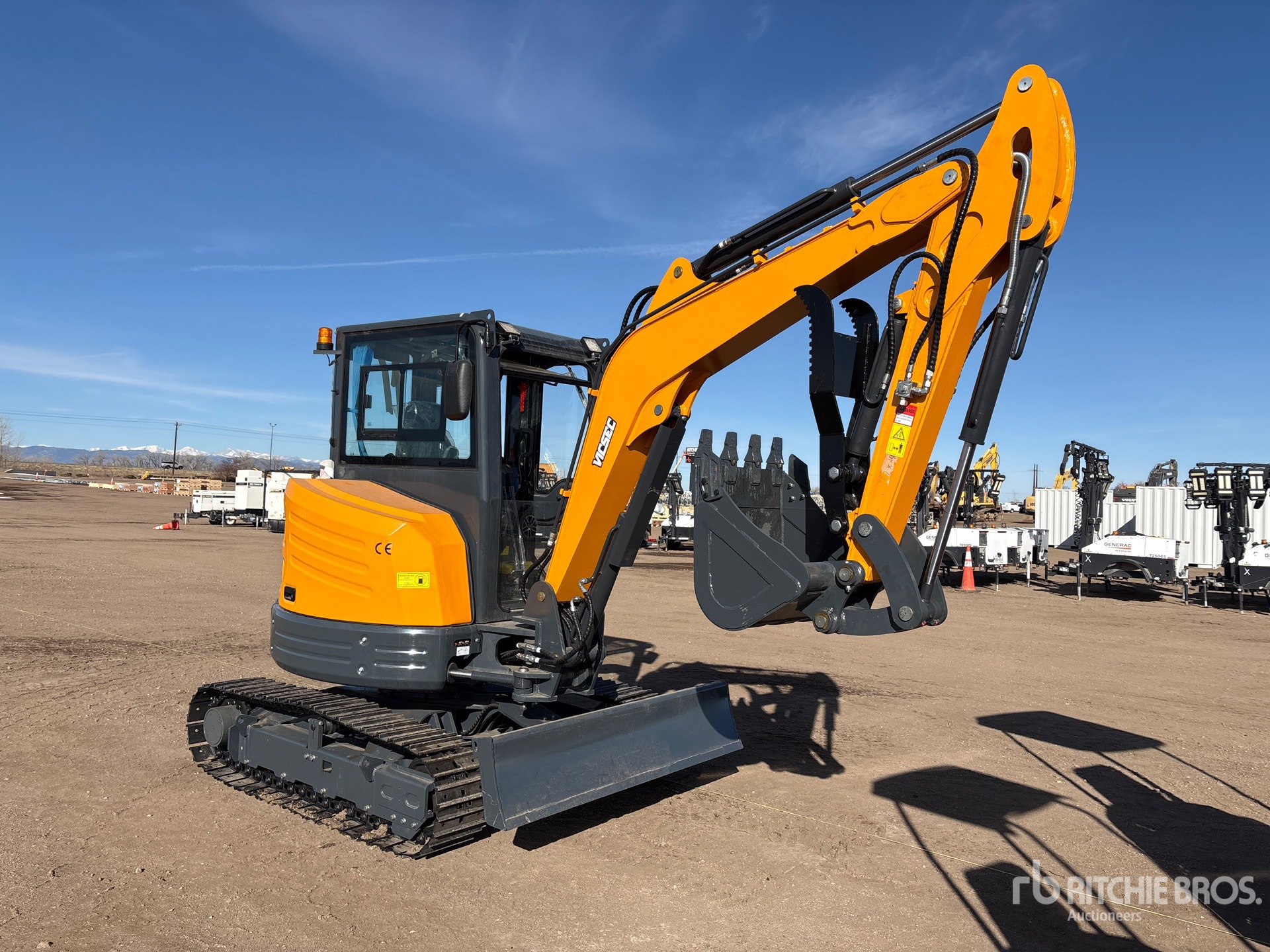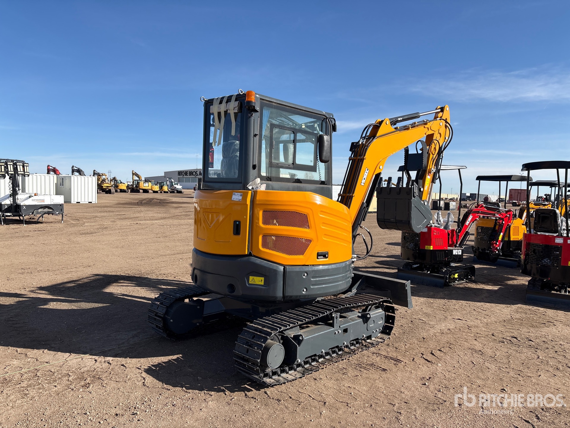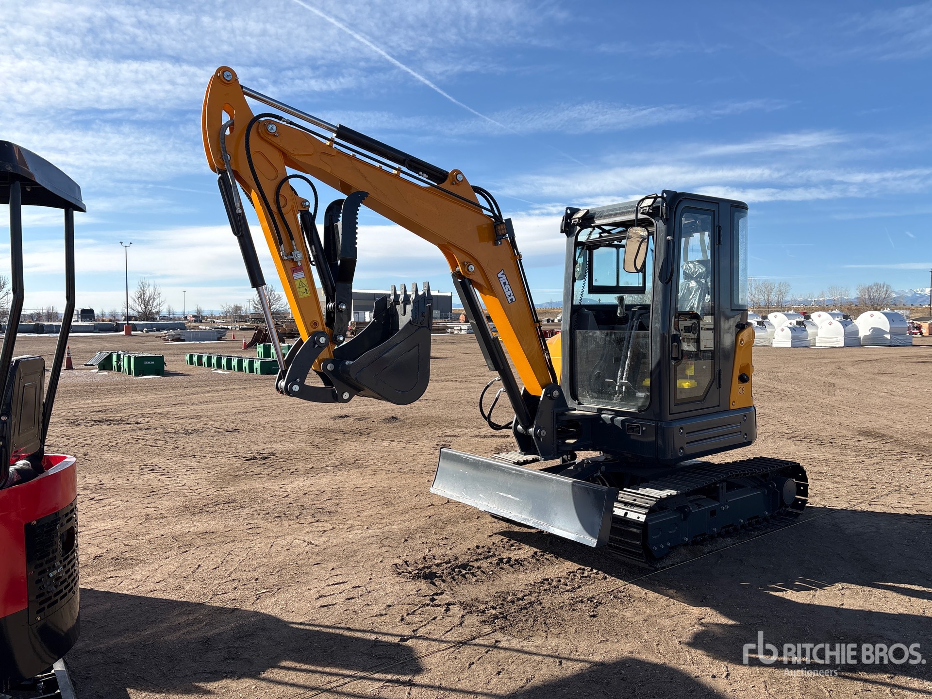 Enclosed Cab, 2025 US EPA Label, 4 ft Stick, Backfill Blade, 12 in Double Grouser Track Shoes, Manual Quick Coupler, 22 in Digging Bucket, Hydraulic Thumb