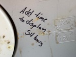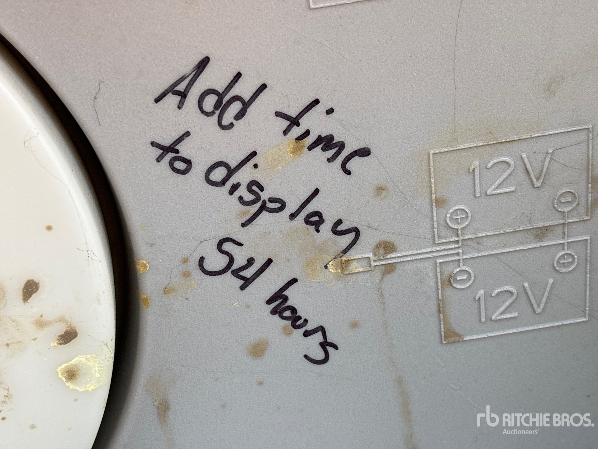 There is an hour meter replacement/change label that has the following reading on it: Add 54 hours to current reading