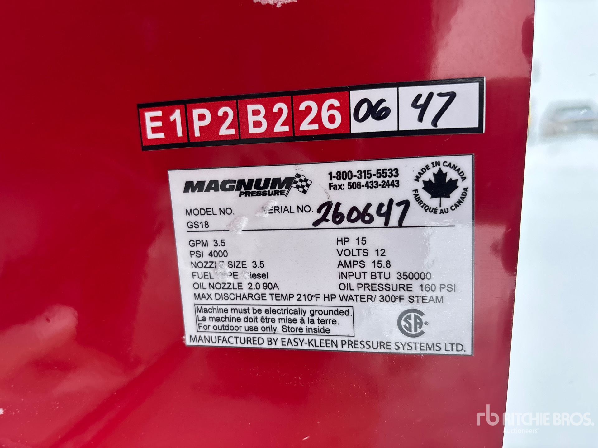 A qualified Ritchie Bros. employee collected detailed equipment information and performed functional tests on the key components of this asset. You, or a proxy, may also inspect any items on site prior to bidding on auction day.