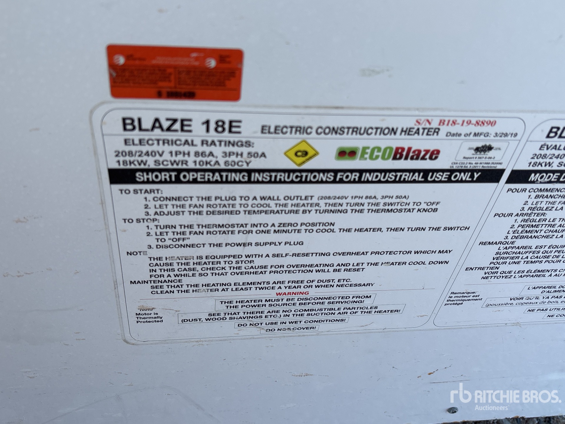 A qualified Ritchie Bros. employee collected detailed equipment information and performed functional tests on the key components of this asset. You, or a proxy, may also inspect any items on site prior to bidding on auction day.