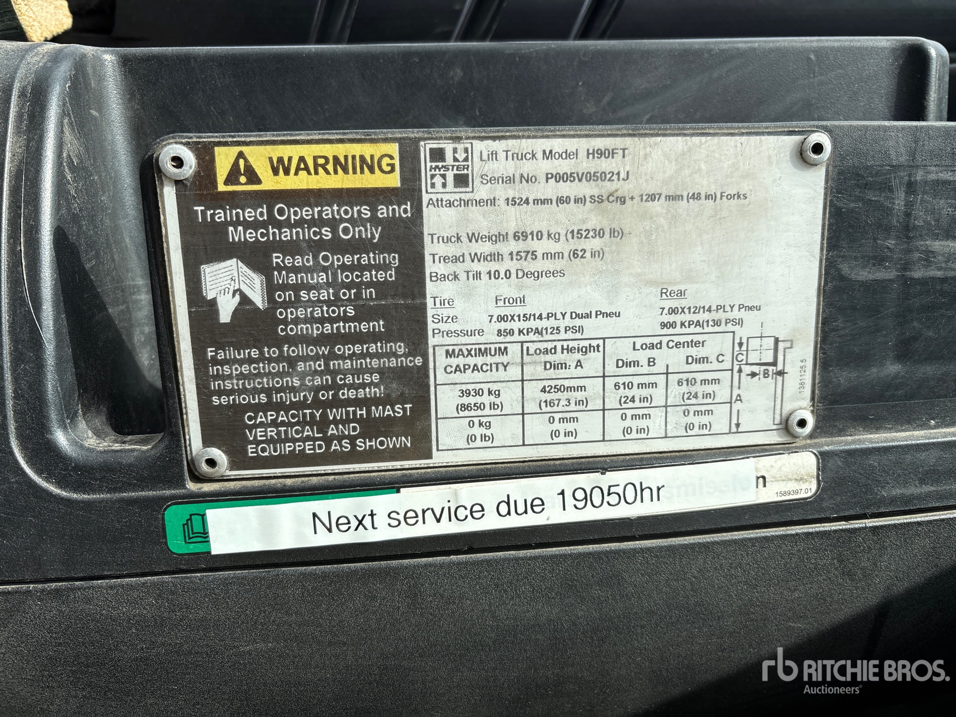 The detailed equipment information is limited in scope, and Ritchie Bros. Auctioneers has not inspected any aspects or components of the equipment other than those expressly set forth herein. Unless expressly stated, we make no representations or warranties, express or implied, concerning the equipment or its components, including without limitation any representations or warranties concerning functionality, conformity or compliance with any safety standard or requirement of any applicable authority or regulatory body, fitness for any particular purpose, or merchantability. You are strongly advised to perform your own detailed inspection of the equipment prior to bidding.