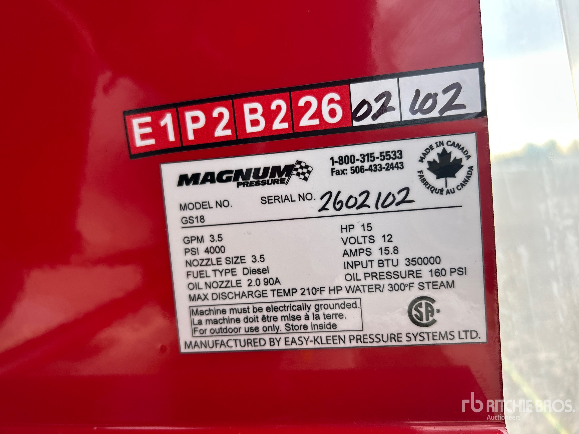A qualified Ritchie Bros. employee collected detailed equipment information and performed functional tests on the key components of this asset. You, or a proxy, may also inspect any items on site prior to bidding on auction day.
