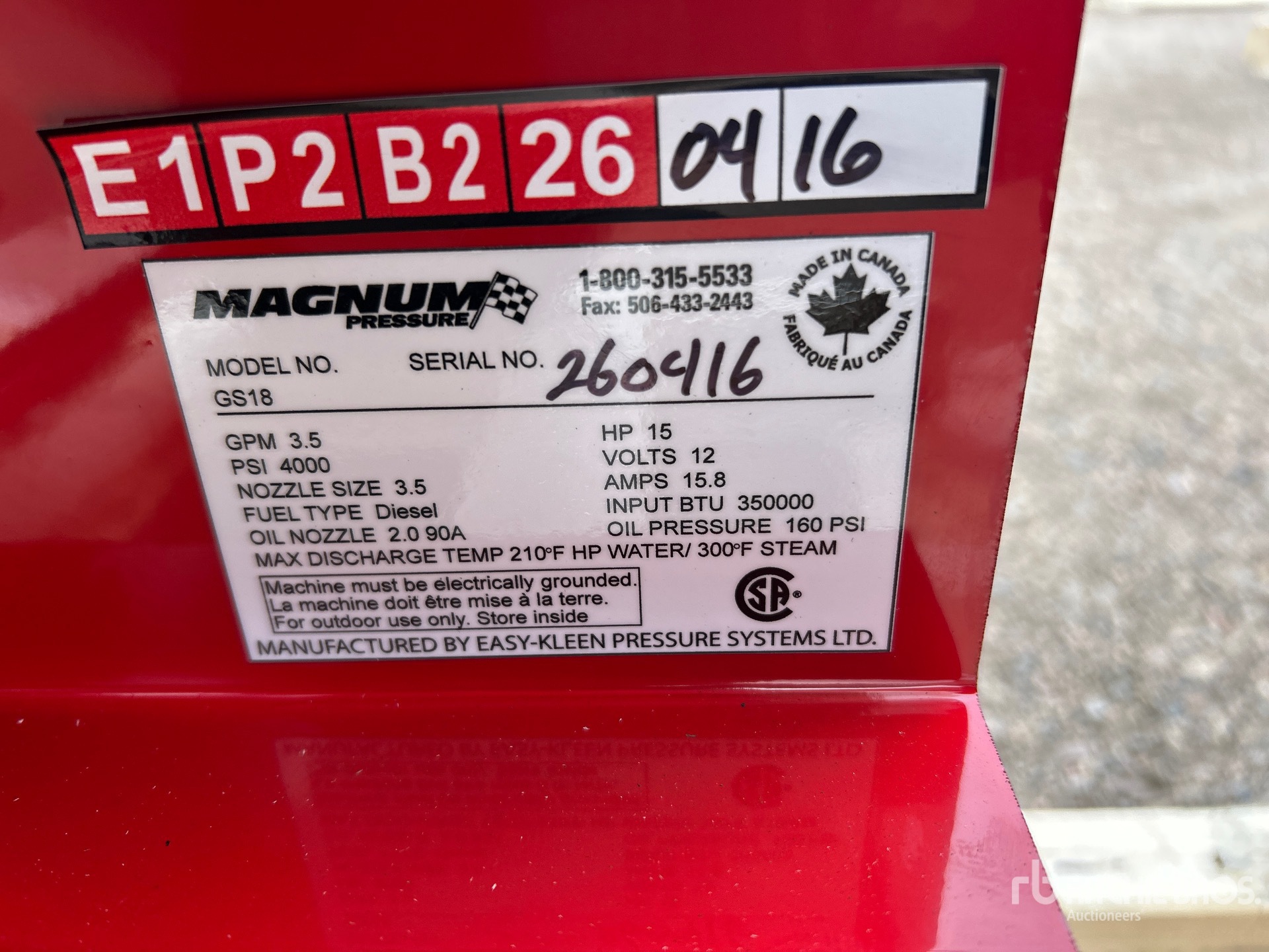 A qualified Ritchie Bros. employee collected detailed equipment information and performed functional tests on the key components of this asset. You, or a proxy, may also inspect any items on site prior to bidding on auction day.