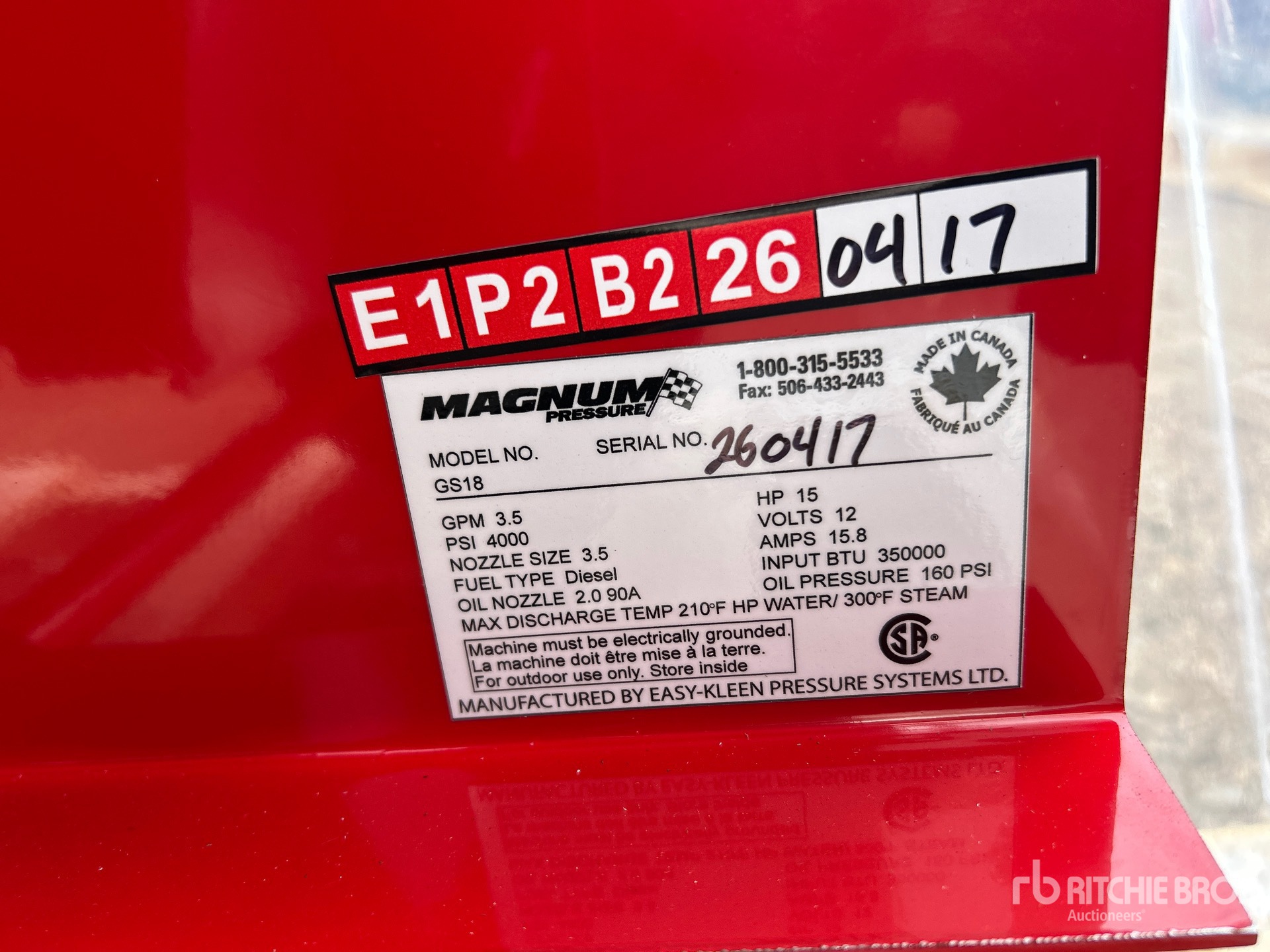 A qualified Ritchie Bros. employee collected detailed equipment information and performed functional tests on the key components of this asset. You, or a proxy, may also inspect any items on site prior to bidding on auction day.